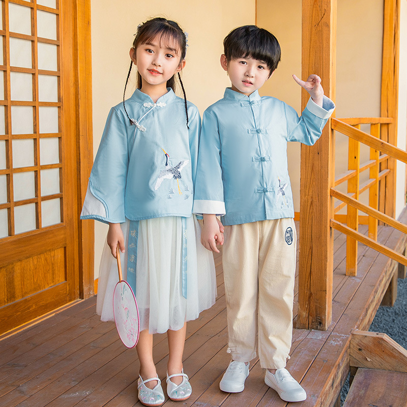 Детская одежда Hanfu для детского сада Костюм для выступлений 1 июня Сладкий костюм Тан Костюм с тремя персонажами Сутра Детский хлопковый костюм в китайском стиле