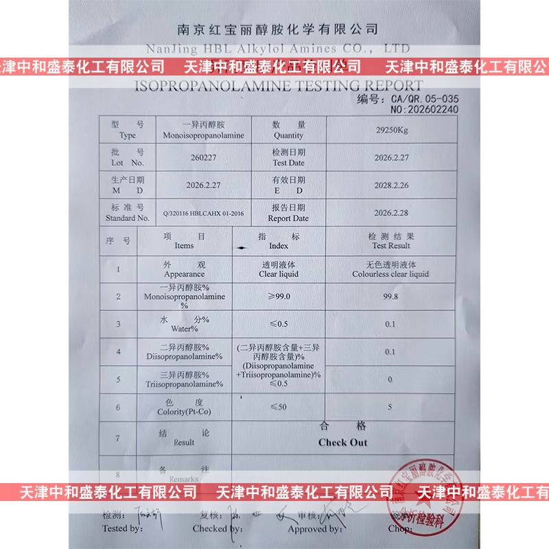 【外文名】Monoisopropanolamine