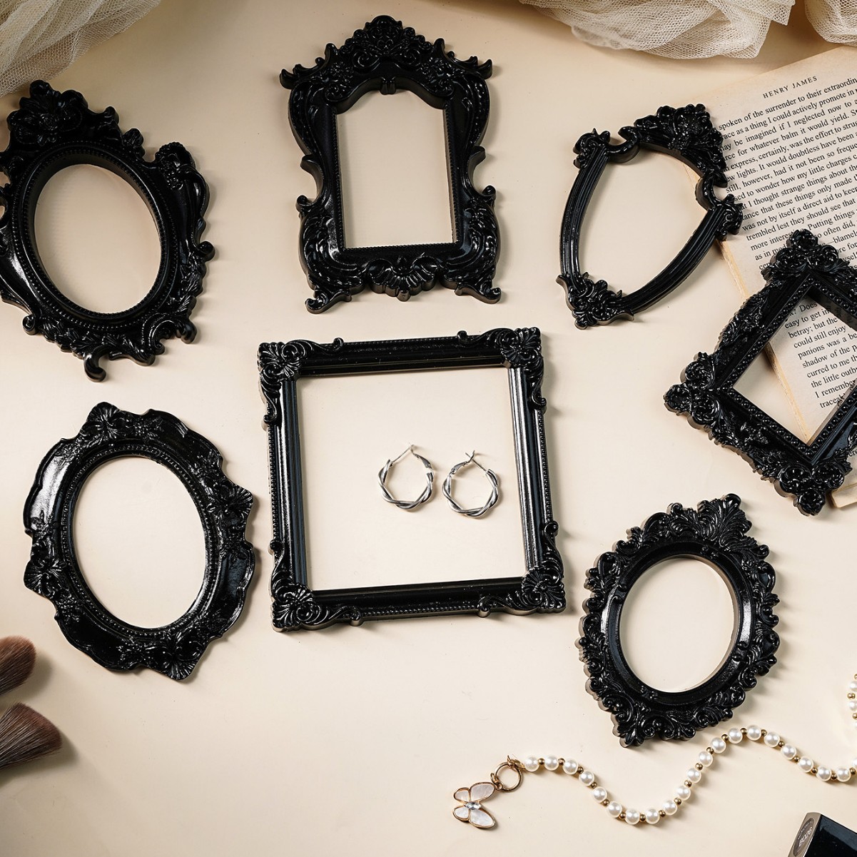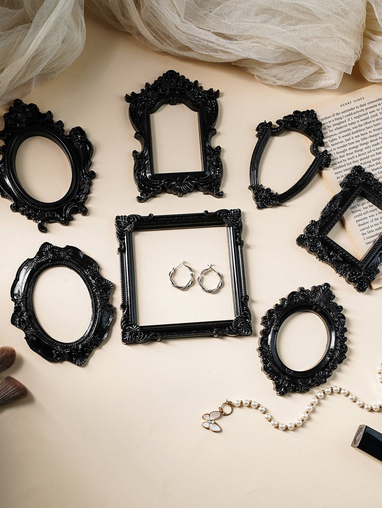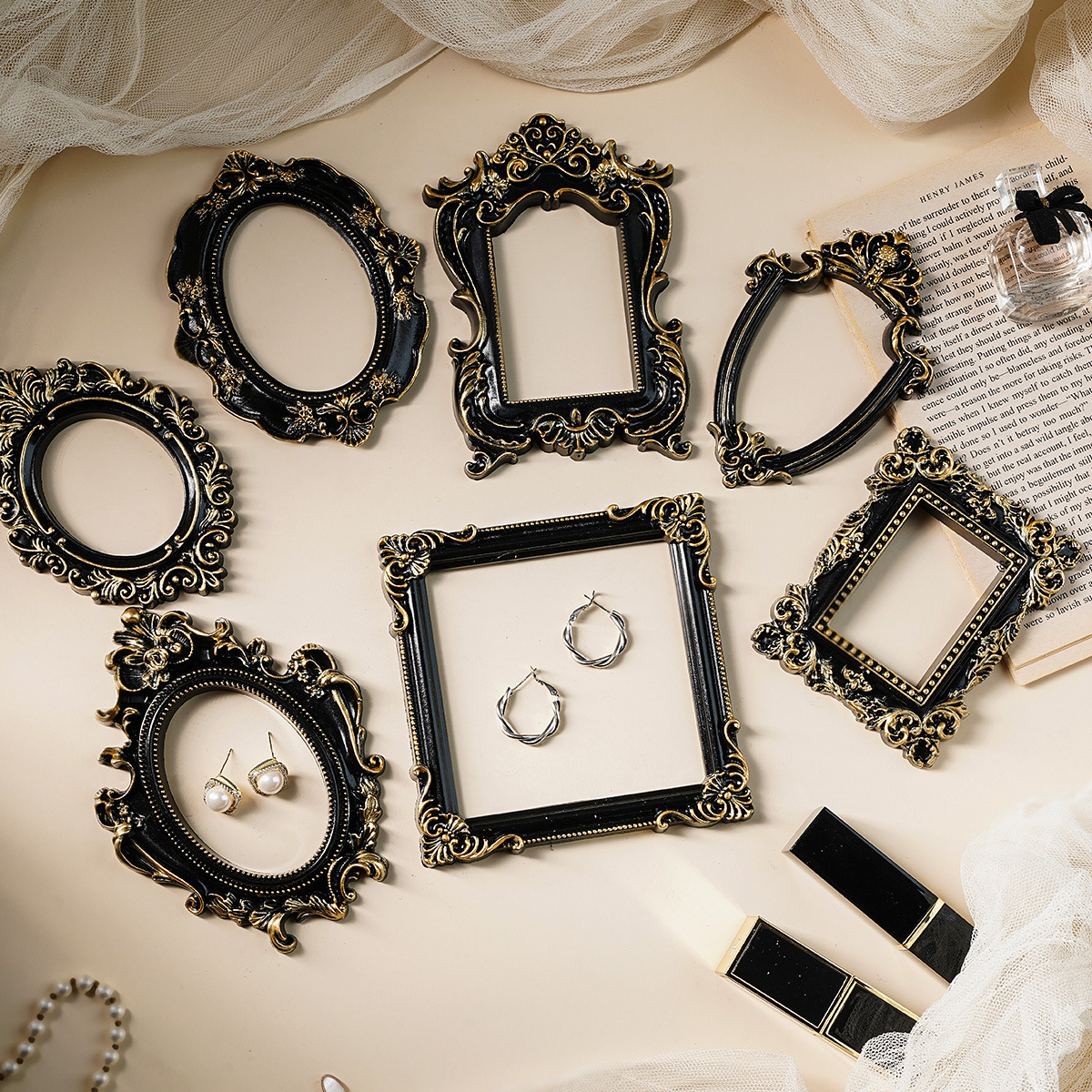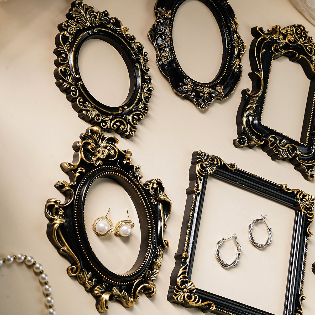 Декоративная рамка для фотографий: белая, золотая, с черным золотым ободком, аксессуары в скандинавском стиле для фотосессий, реквизит для съемок.