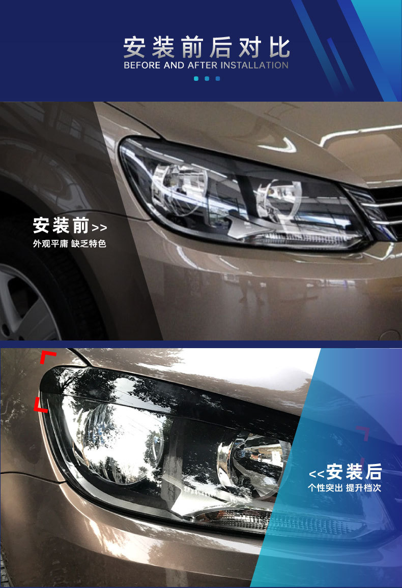 Подходит для Volkswagen Touran 2011-2015, наклейки для бровей фар, автомобильные наклейки, детали для трансграничной модификации