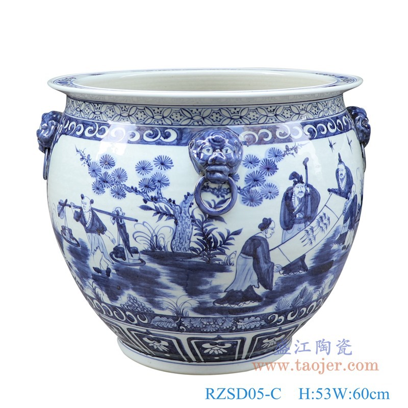 Ваза из сине-белого фарфора ручной росписи из Цзиндэчжэня с рисунком льва, цветов и птиц, большой аквариум для карпов кои, аквариум для лотосов, декоративное изделие для двора с изображением восьми бессмертных.
