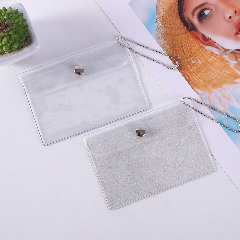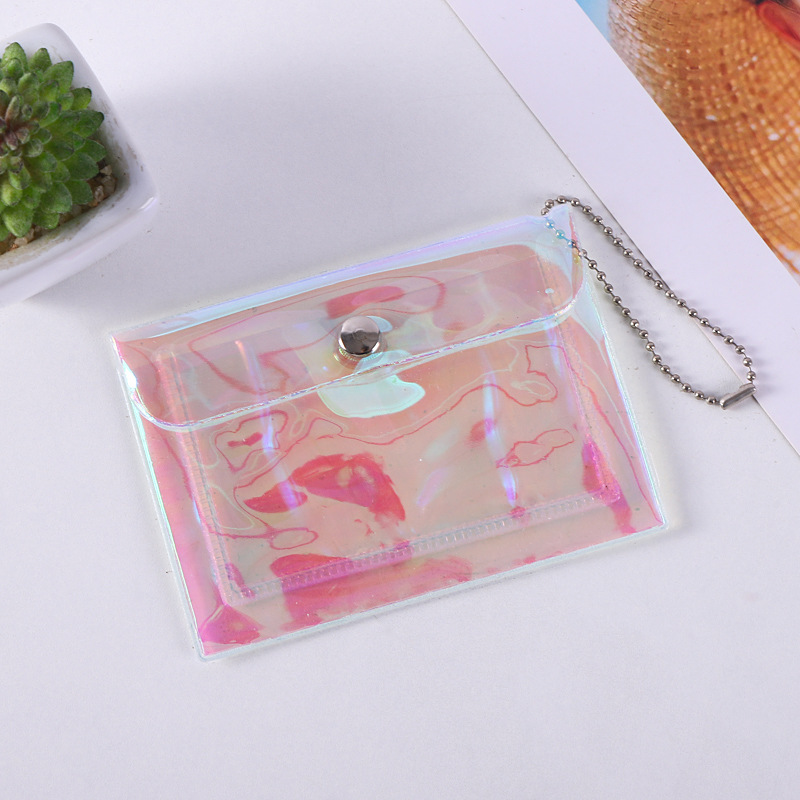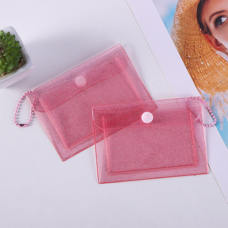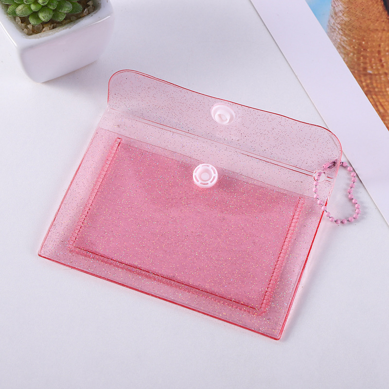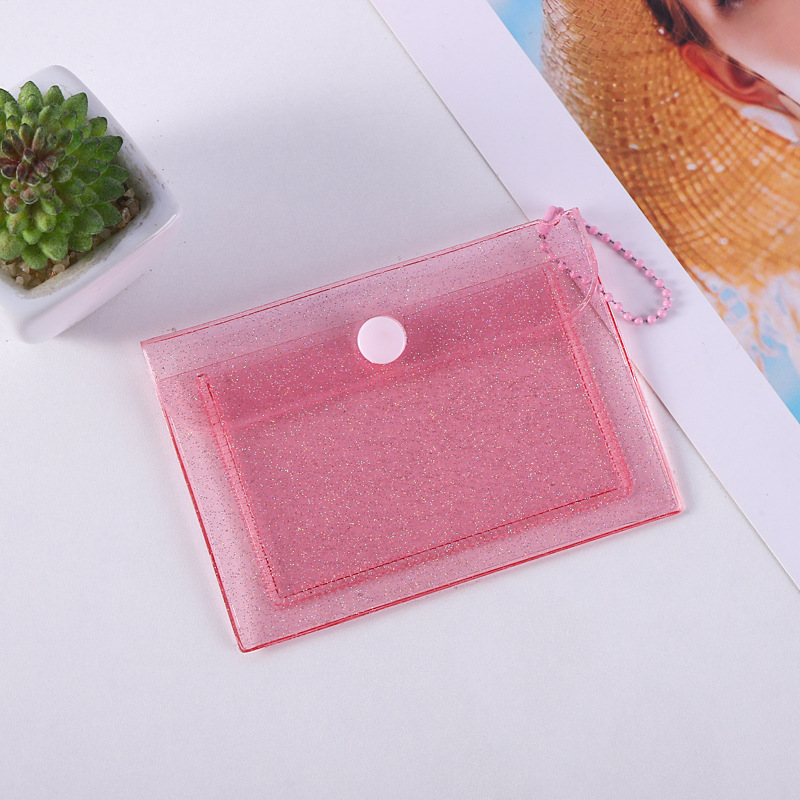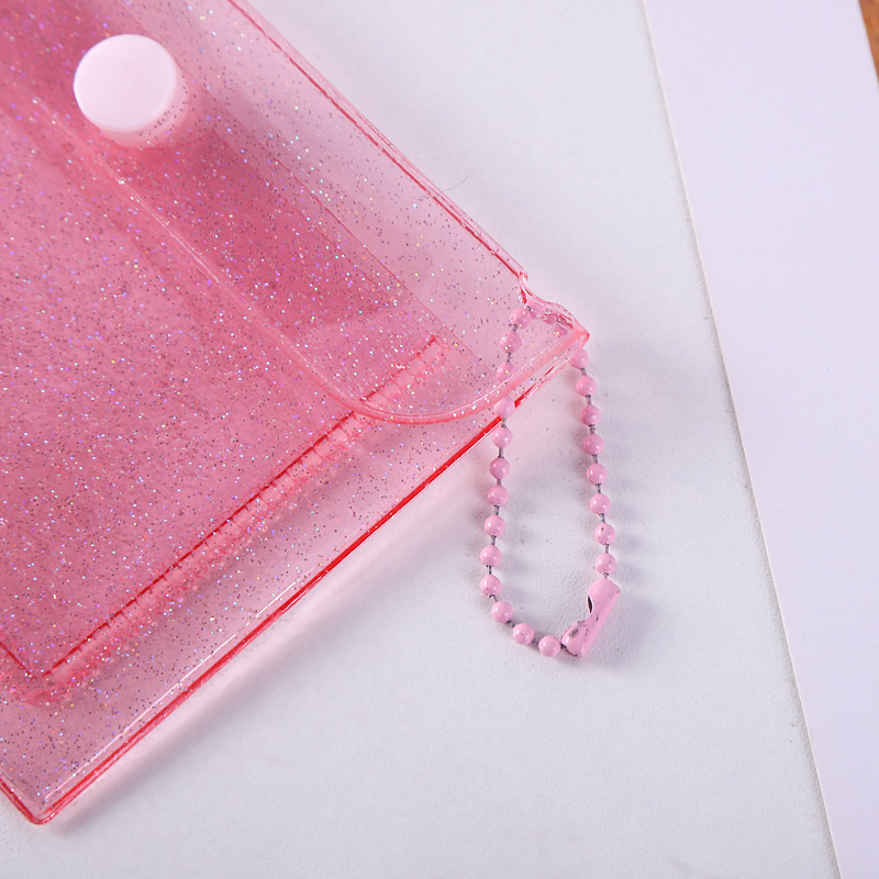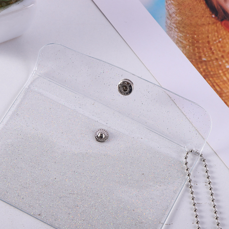 Прозрачный держатель для сменной карты Держатель для карты ПВХ Мини-блестящая кнопка для хранения Держатель для рисовой карты Симпатичный женский кошелек для монет с сердцем
