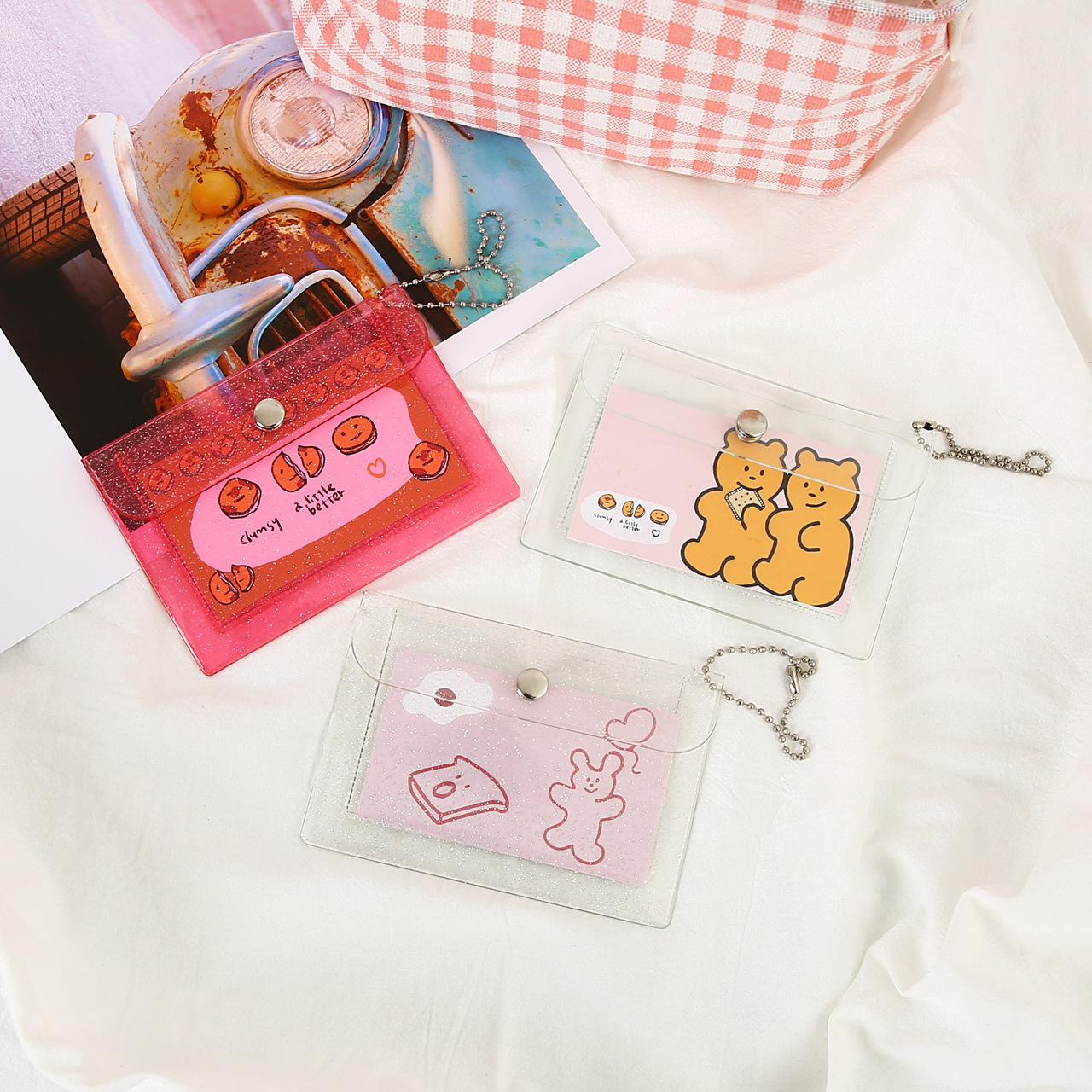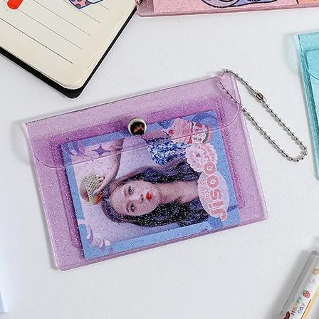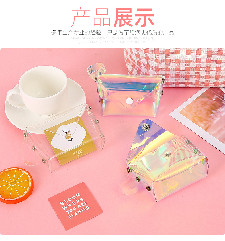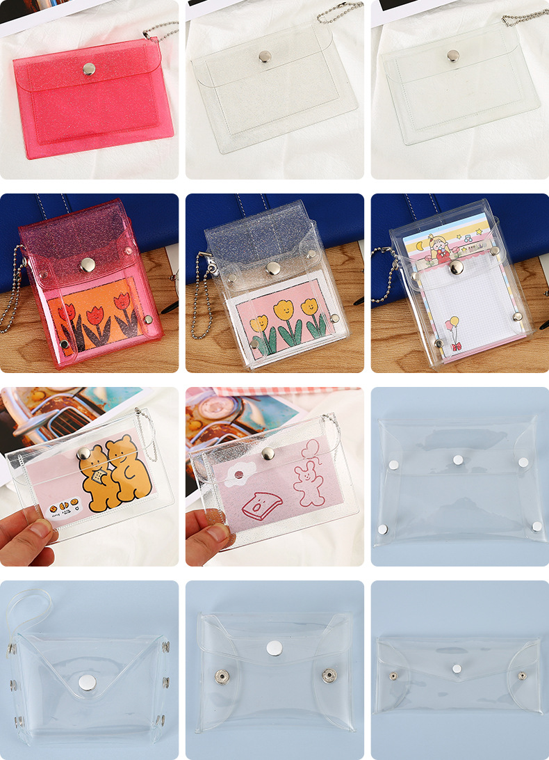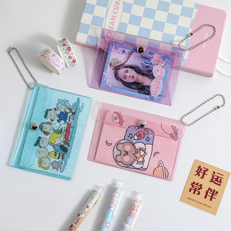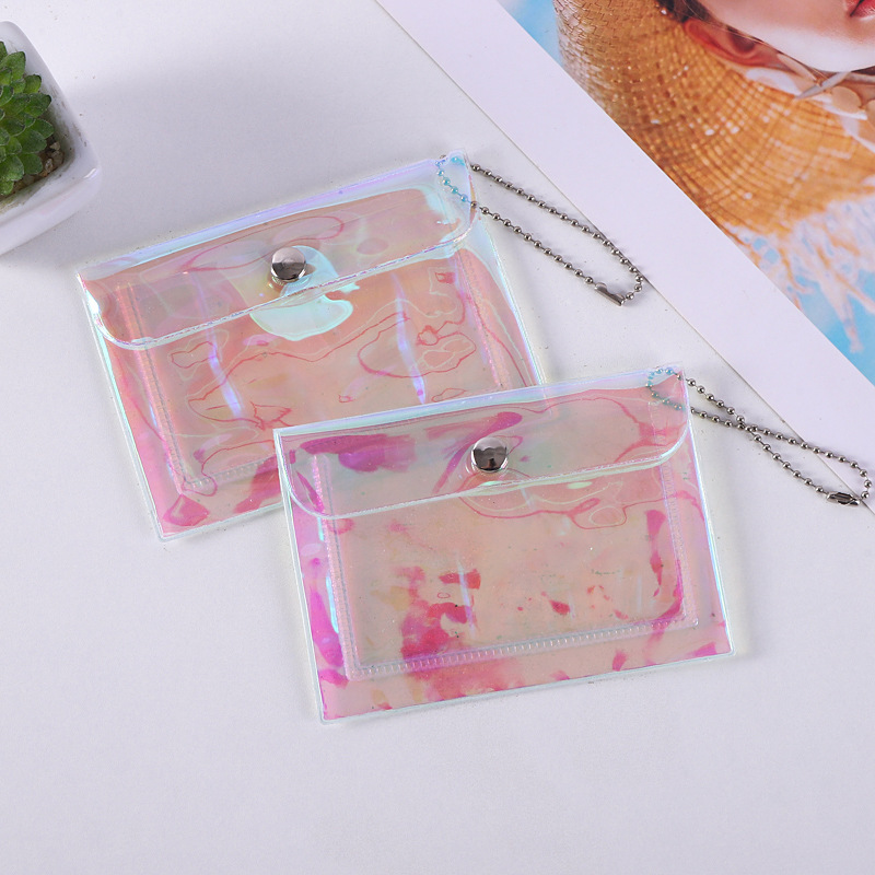 Прозрачный держатель для сменной карты Держатель для карты ПВХ Мини-блестящая кнопка для хранения Держатель для рисовой карты Симпатичный женский кошелек для монет с сердцем
