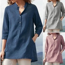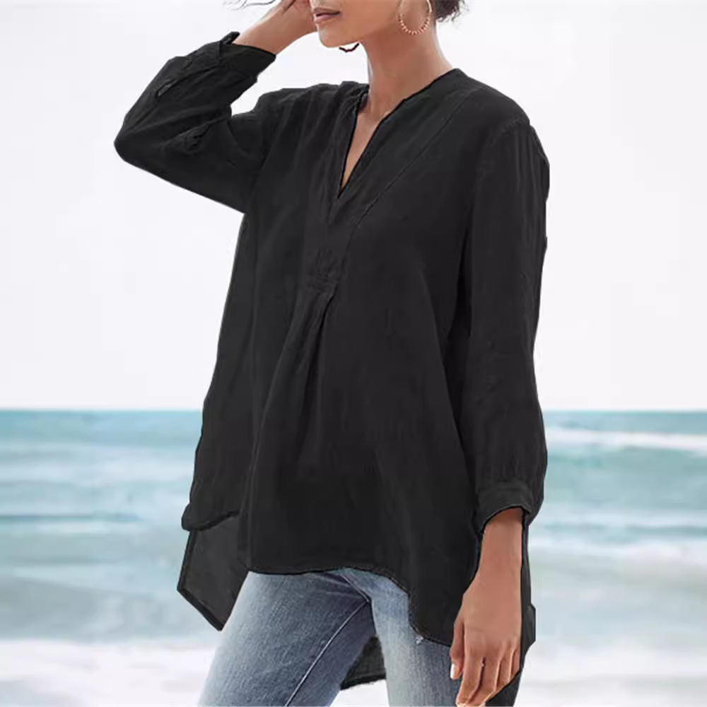 Трансграничный новый продукт, экспортный льняной чистый цвет, европейская и американская повседневная модная тюлевая рубашка с 7-точечными рукавами-фонариками