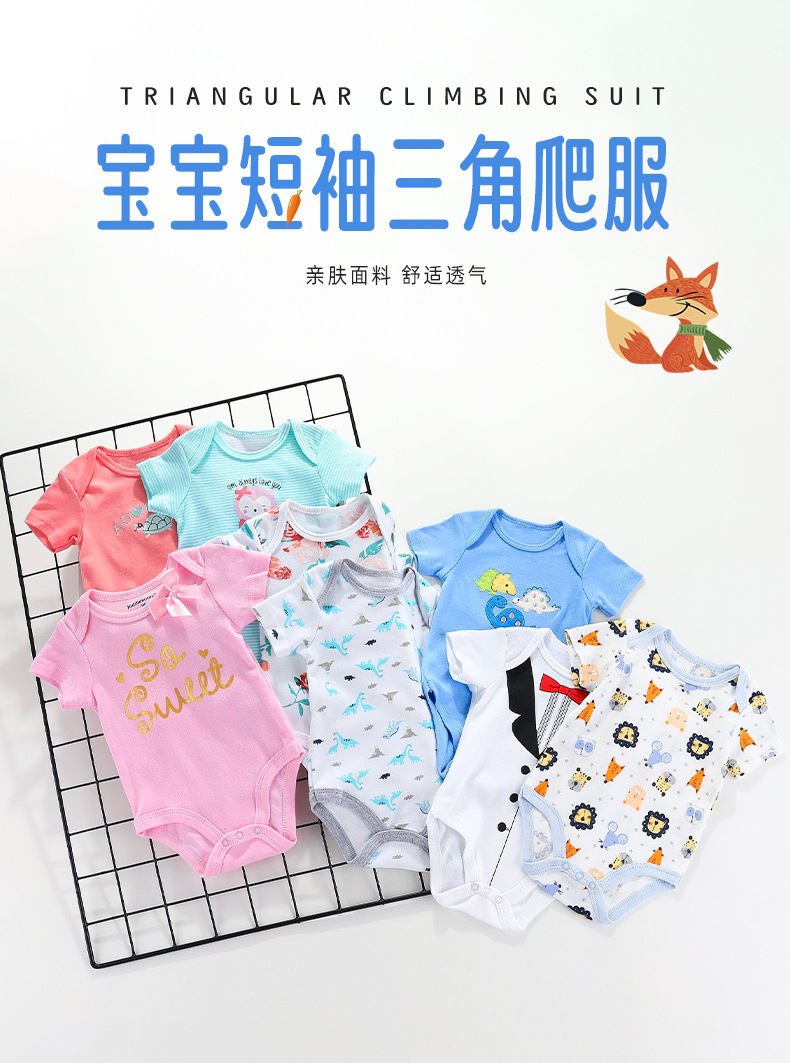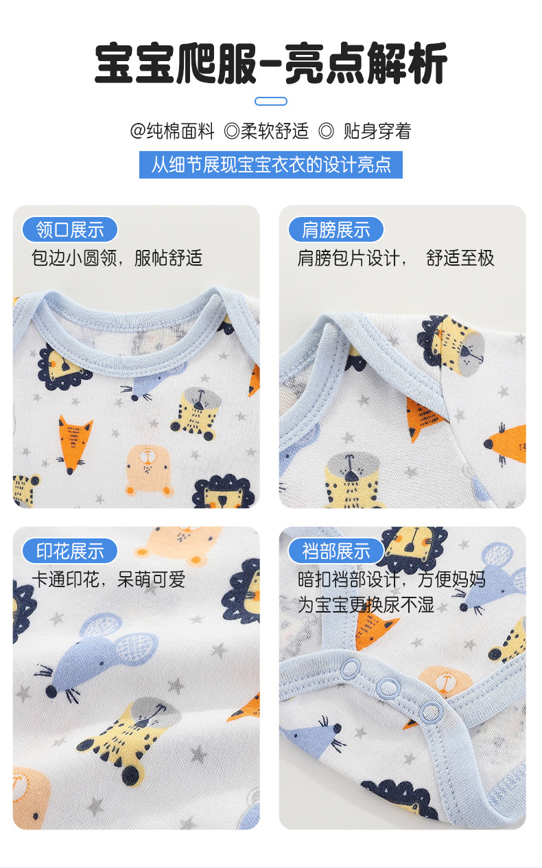 Комбинезон с короткими рукавами из мультфильма, комбинезон из чистого хлопка, цельное боди для малышей 0-2 лет, летнее цельное боди с короткими рукавами