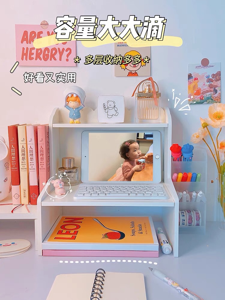 Настольная стойка для хранения Двухслойная деревянная простая книжная полка Стеллаж для хранения для стола Белое сердце девушки Студенческая косметическая коробка