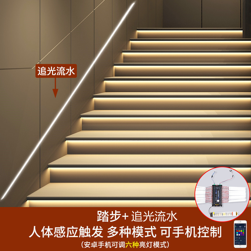 Интернет знаменитости лестница шаг свет Интеллектуальный чеканка свет лошадь проточной воды свет с водонепроницаемый шаг свет бар светодиодные линии индукции свет
