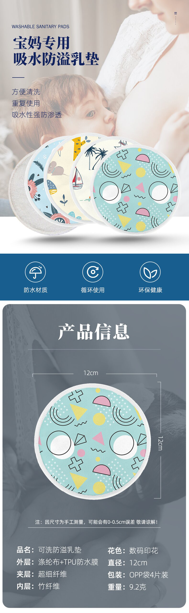Трансграничный трехслойный водонепроницаемый бамбуковое волокно против перелива молочная прокладка цифровая печать можно мыть после родов