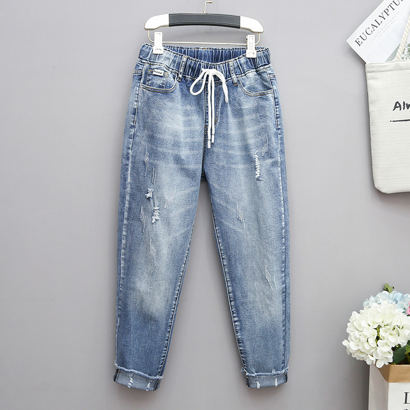 Плюс размер стрейч джинсы женские 200 кг пухлые девушки Харлан брюки свободные тонкие репы эластичные высокой талией повседневные брюки