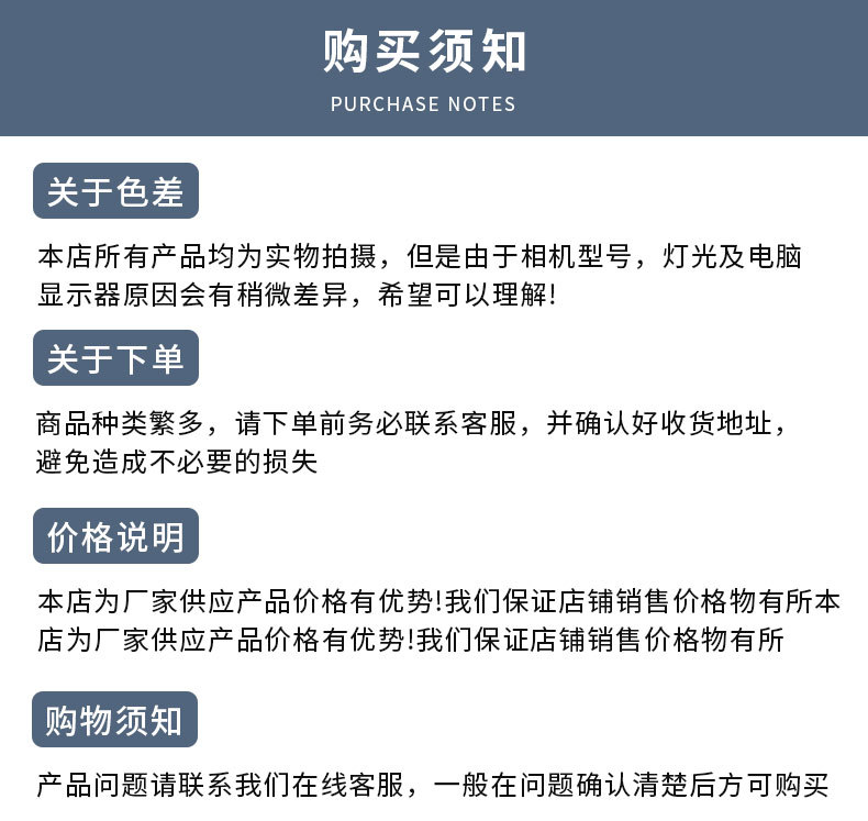 生产大货前买家需支付30%的定金,在出货前付清70%余额(特殊情况下需支付50%的定金),详细情况欢迎来电或者来函洽谈询价。6、关于发货本店默认发优速、中通快递,如需发顺丰请联系客服补交邮费差价,大件走物流,具体物流联系客服。注:有任何问题请第一时间联系在线客服!