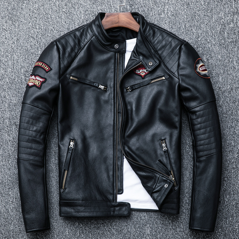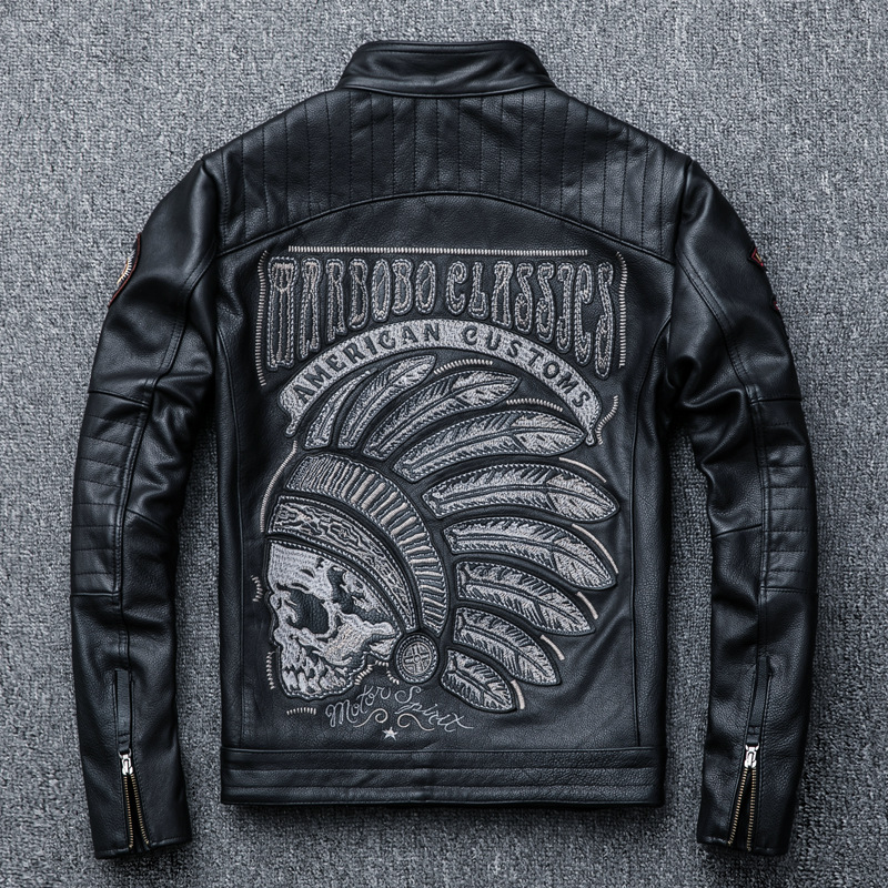 Мужская мотоциклетная куртка из натуральной воловьей кожи с индийской вышивкой, Мужская мотоциклетная куртка с воротником-стойкой