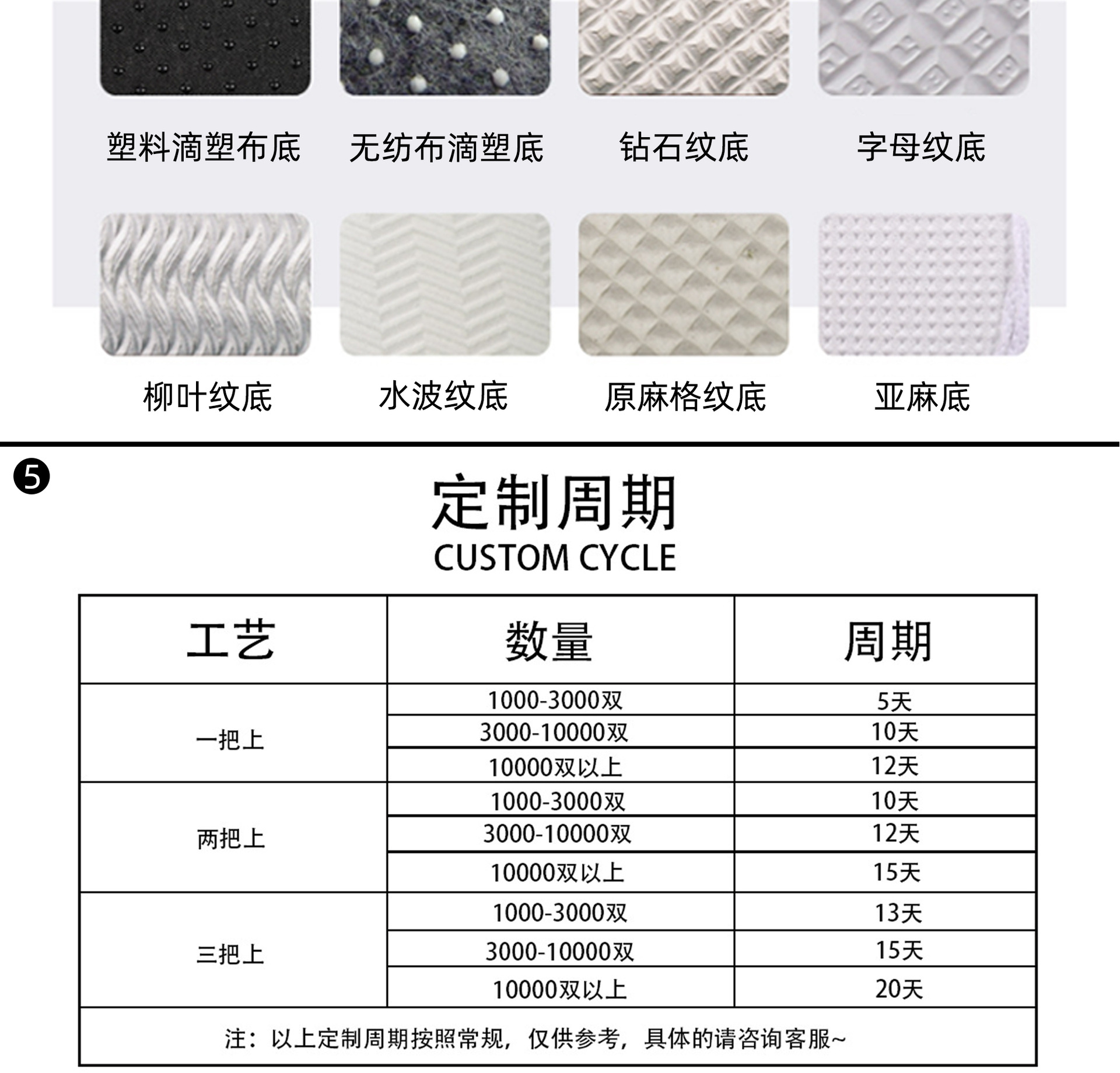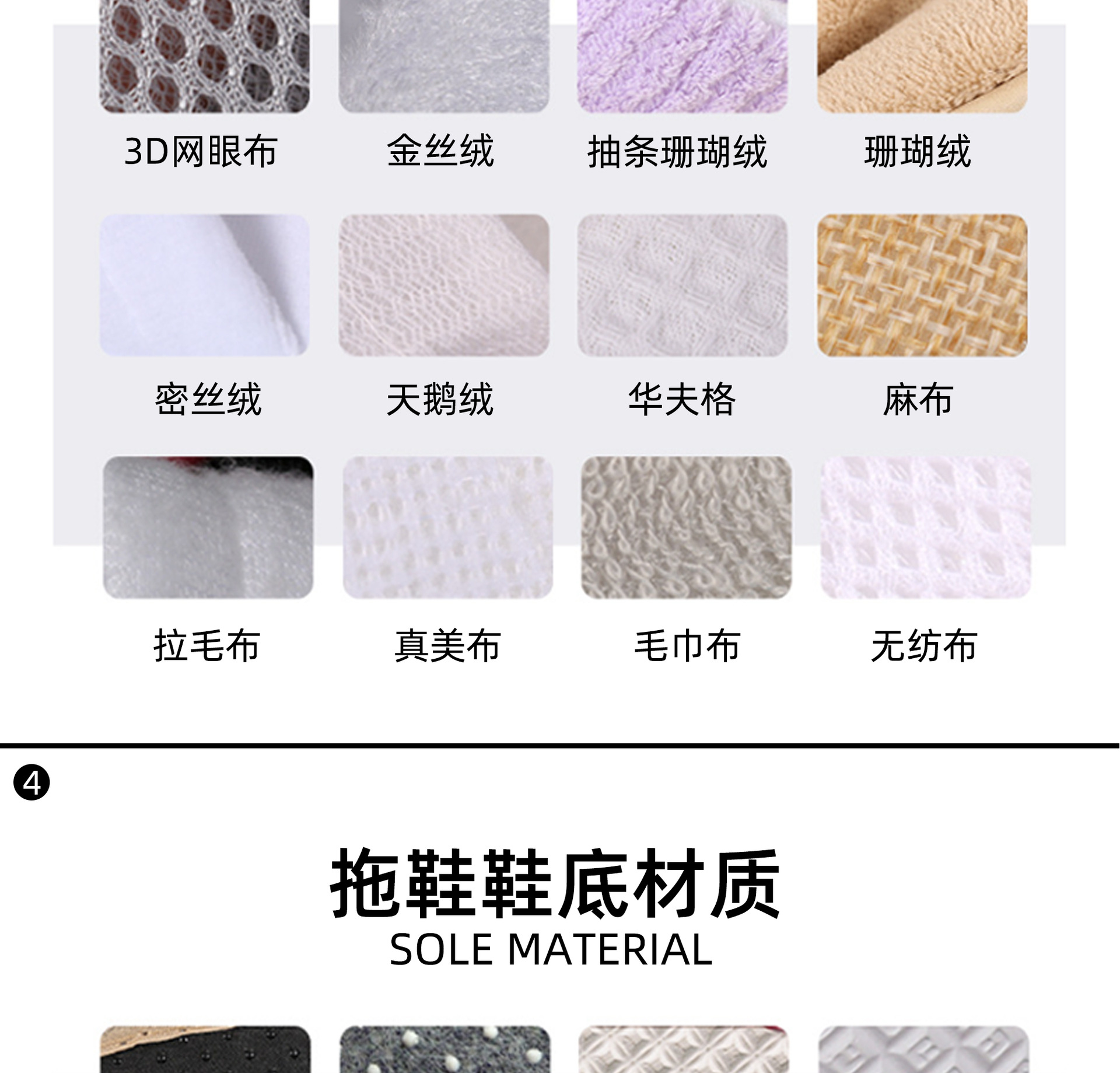 Тапочки из нетканого материала высотой 4 мм.; Тапочки из нетканого материала с шариковым дном 4 мм, белые; Тапочки из нетканого материала с шариковым дном толщиной 4 мм, серые; Белые тапочки из нетканого материала на пластиковой подошве с точками толщиной 5 мм.; Тапочки из нетканого материала с серым пластиковым дном толщиной 5 мм в горошек; 5 мм белый высокопенопластовый нетканый утолщенный материал с тиснением; 5 мм серый высокопенопластовый нетканый утолщенный материал с тиснением; 8 мм Hanting Hotel Same Style Белый; 8 мм Hanting Hotel Same Style Green; 8 мм Hanting Hotel Same Style Серый; Нескользящий низ из нетканого материала толщиной 6 ммEPE голубого цвета; Нескользящий низ из нетканого материала толщиной 6 ммEPE, белый; Нескользящий низ из нетканого материала толщиной 6 ммEPE серого цвета; Утолщенный нетканый материал толщиной 7 мм в стиле EPE Haitang.; Утолщенный нетканый материал EPE толщиной 7 мм с узором «елочка».; Утолщенный нетканый материал толщиной 7 мм EPE в стиле вишневого цвета; Утолщенный нетканый материал толщиной 7 мм из турмалина EPE.; Базовая сетка толщиной 8 мм, игольчатый хлопок, белый цвет, «все включено»; Основная сетка толщиной 8 мм, игольчатый хлопок, серый цвет, «все включено»; Мягкая ткань толщиной 6 мм, без запаха, EPE, нескользящая, с белым краем.; Мягкая ткань толщиной 6 мм, без запаха, EPE, противоскользящая, с серым краем.; Всесезонный отель толщиной 6 мм, ткань из растительного волокна в том же стиле, с белым краем; 6 мм всесезонный отель в том же стиле из растительного волокна с серым краем; Цепочка 7 мм, отельный стиль, тонкий хлопковый велюр, подкладка из EPE, темно-серый цвет; Цепочка 7 мм, отельный стиль, тонкий хлопковый велюр, подкладка из EPE, светло-серый цвет; Тапочки с тиснением из утолщенного на 6 мм иглопробивного хлопка с белой полукрышкой.; Тапочки с тиснением из утолщенного на 6 мм иглопробивного хлопка с полным серым покрытием; [Новый стиль] Тапочки из ткани с квадратным узором 7 мм с подошвой, белые; [Новый стиль] Тапочки из ткани с квадратным узором 7 мм с подошвой, серые; Низ из матового льна толщиной 4 мм.; Низ из матового льна толщиной 4 мм, половина упаковки; Противоскользящий рисунок из волнистых листьев 5 мм.; Утолщенные матовые тапочки с узором из ивовых листьев толщиной 6 мм (белые); Тапочки с начесом на подошве 6 мм (белые); Белая мягкая ткань толщиной 6 мм с кофейным краем.; Ткань настоящей красоты темно-серого цвета толщиной 6 мм, полностью инкрустированная основой; Бархатная основа из белого золота толщиной 6 мм.; Действительно красивая ткань, наполовину покрытая белым; Действительно красивая ткань, полупакет черного цвета; Полукапсула риса из ткани Чжэньмэй; Действительно красивая ткань, вся покрытая белым; Действительно красивая ткань, вся покрытая черным цветом.; Рис из ткани Чжэньмэй «все включено»; XPE противоскользящее основание, ткань Real Beauty (светло-серый); Нескользящая нижняя часть из настоящей косметической ткани XPE (темно-серая); Тапочки из махровой ткани толщиной 6 мм (белые); Тапочки полузатерты из махровой ткани толщиной 6 мм (белые); Тапочки на утолщенной подошве из махровой ткани толщиной 6 мм (белые); Половинная упаковка льняных тапочек 4 мм (серые); Льняные тапочки полуупакованные 4мм (желтые); Полузакрытый лен толщиной 6 мм (желтый); Полузакрытый лен толщиной 6 мм (серый); 7мм высококачественный лен желтый (желтый); 7мм высококачественный лен (серый