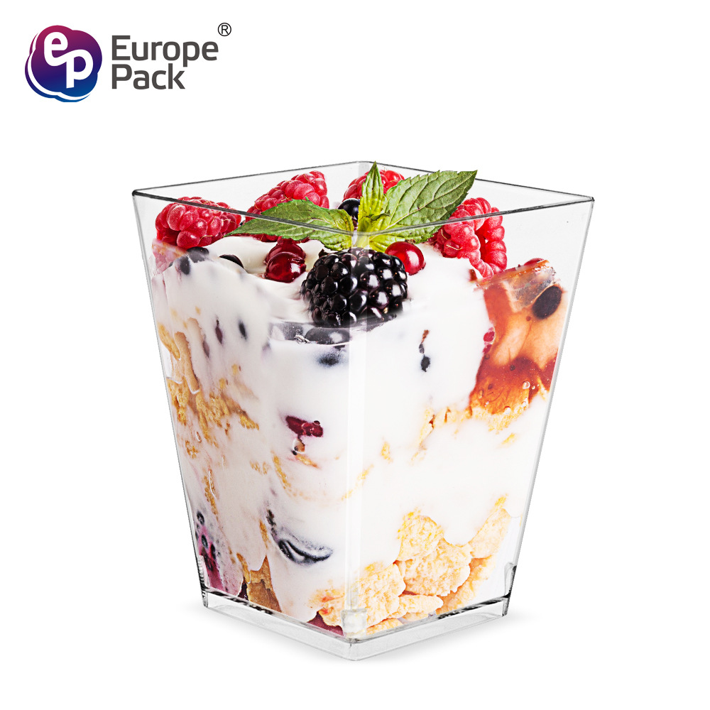 Индивидуальные квадратные трапециевидные пластиковые стаканчики для десертов, мусса и пудинга из ПС, 5 унций