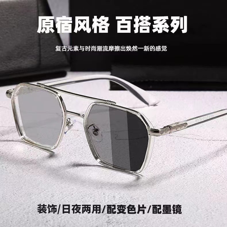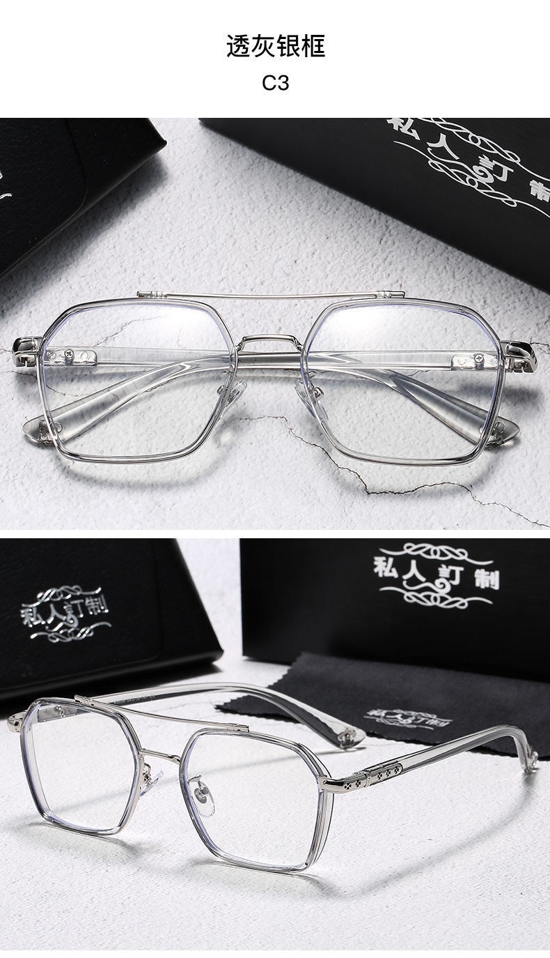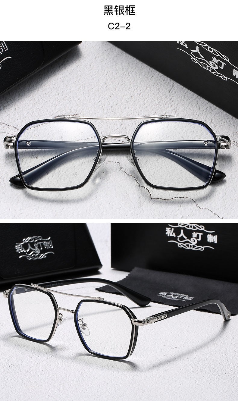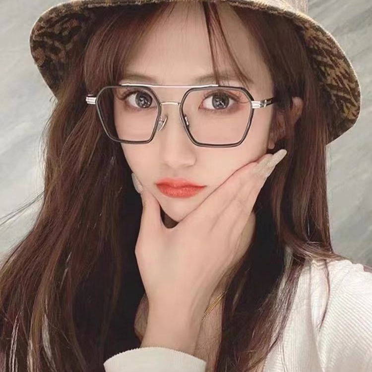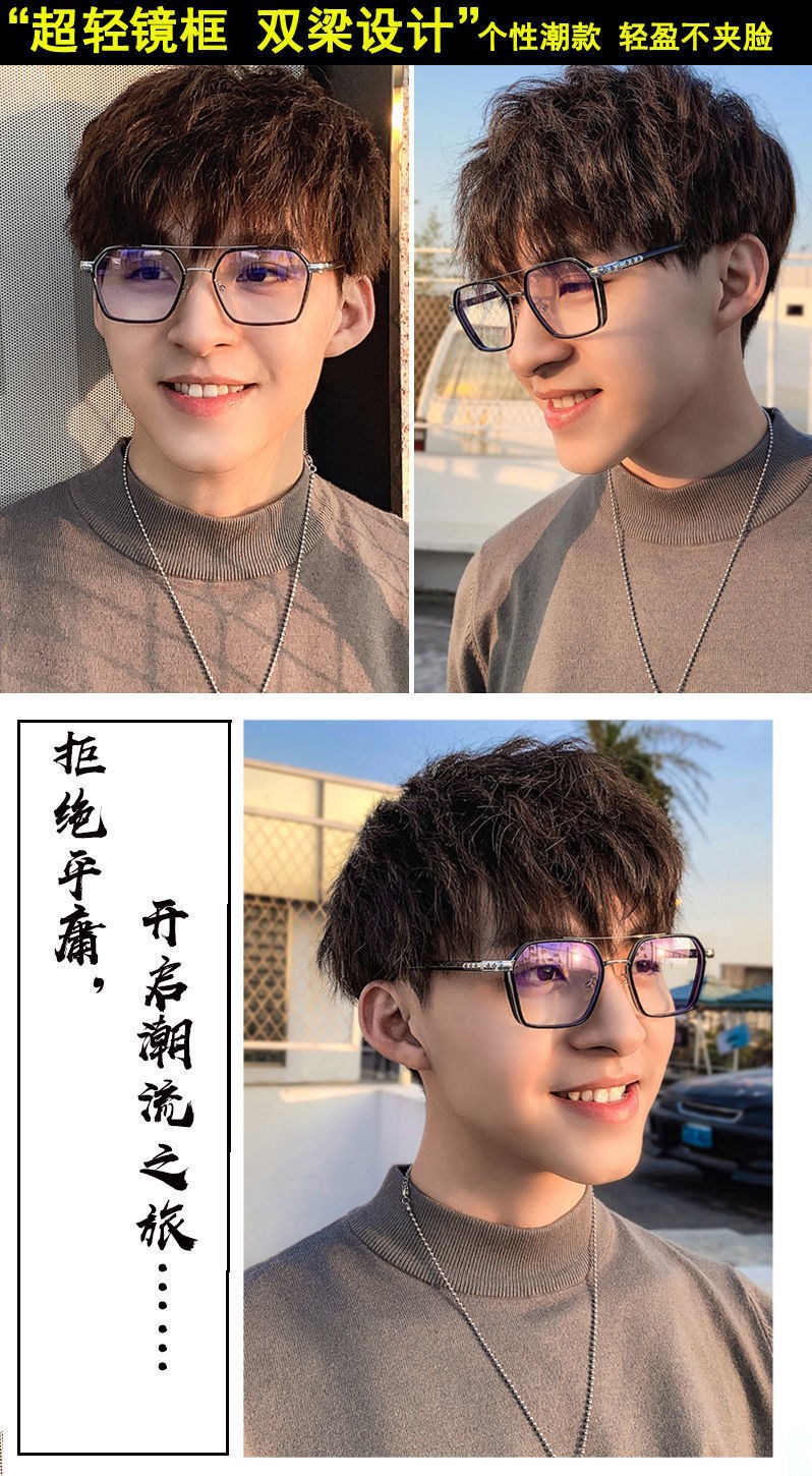 Модные ретро двойные лучи обесцвечивания очки оправы мужской анти-синий свет плоские очки миопии готовые очки женские обесцвеченные очки
