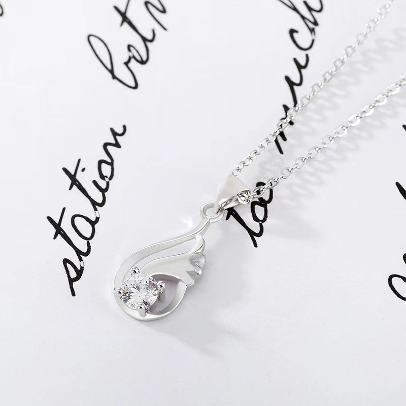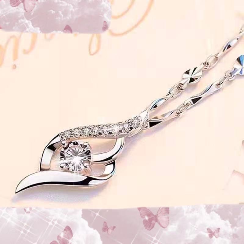 Кулон Ожерелье Оптовая Сие Трава Вечный Синий Бриллиант Роза Любовь Крылья Ангела Купидона