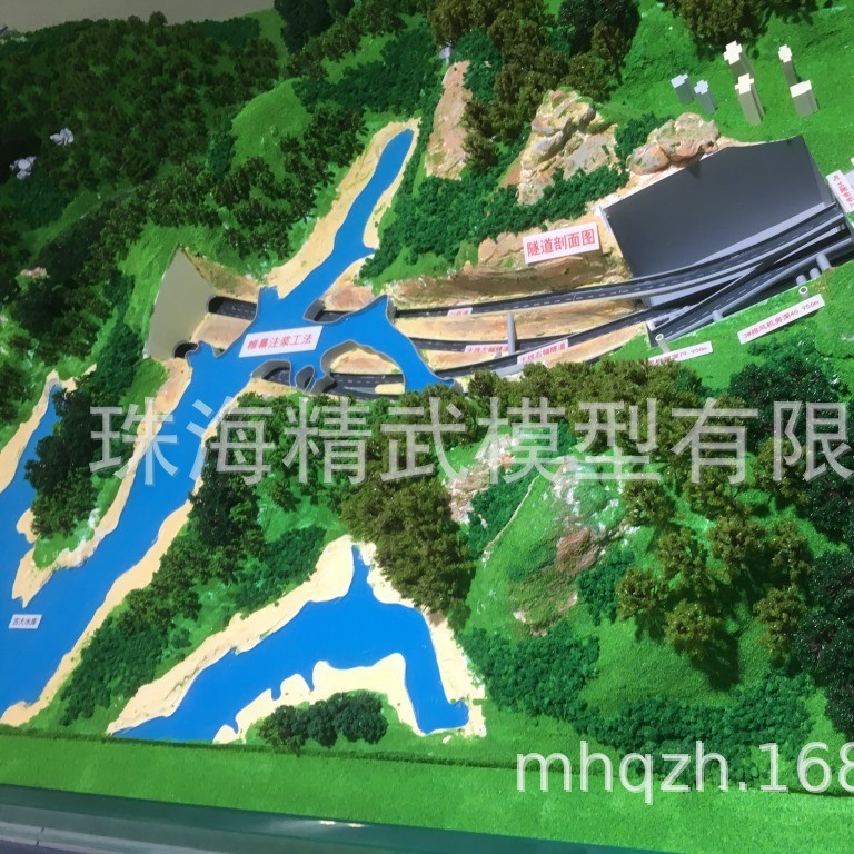 (2)、水系:海、河、湖等水面,制作中对较大的水面部分采用水纹玻璃铺设,表面铺设蓝色材料。