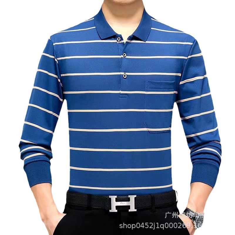 Футболка с длинными рукавами 2025 года для мужчин среднего и пожилого возраста, свободный верх с обратным воротником, полосатая хлопковая футболка, мужская рубашка-поло для отца