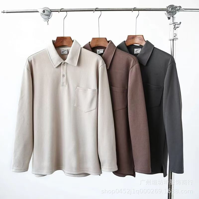 Многоцветная мужская футболка с длинными рукавами и круглым вырезом.; Многоцветная мужская футболка с длинным рукавом и полосатым воротником; Многоцветная мужская футболка с длинным рукавом и воротником поло, однотонная