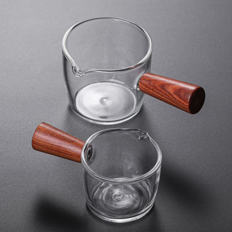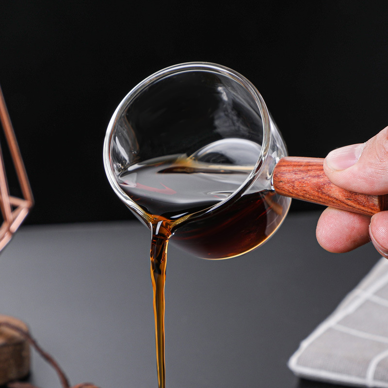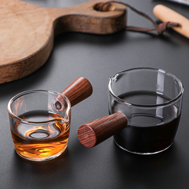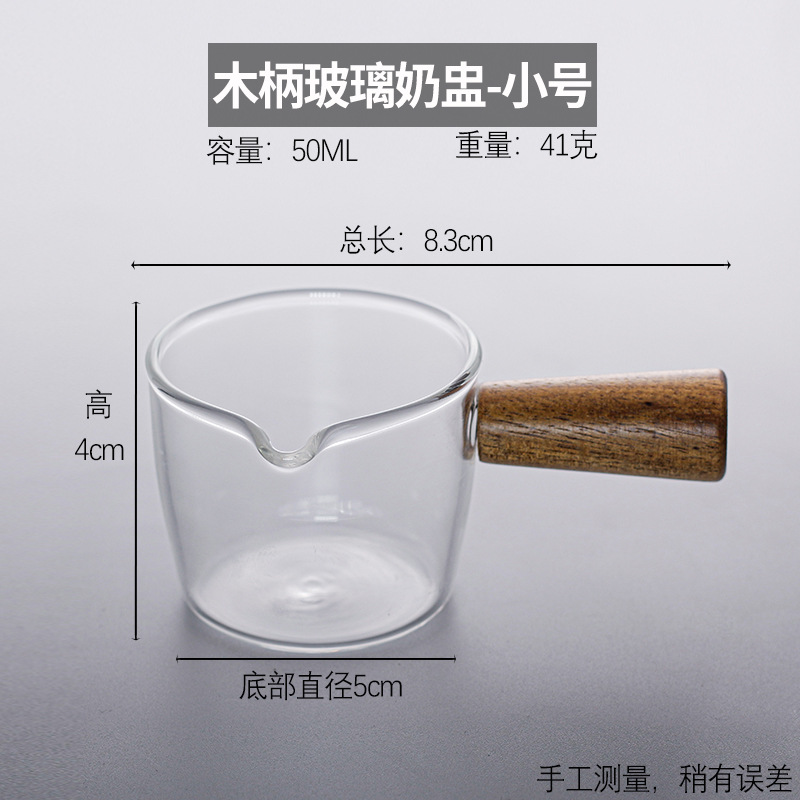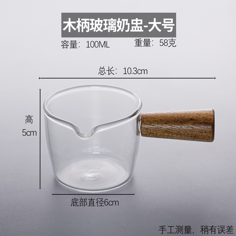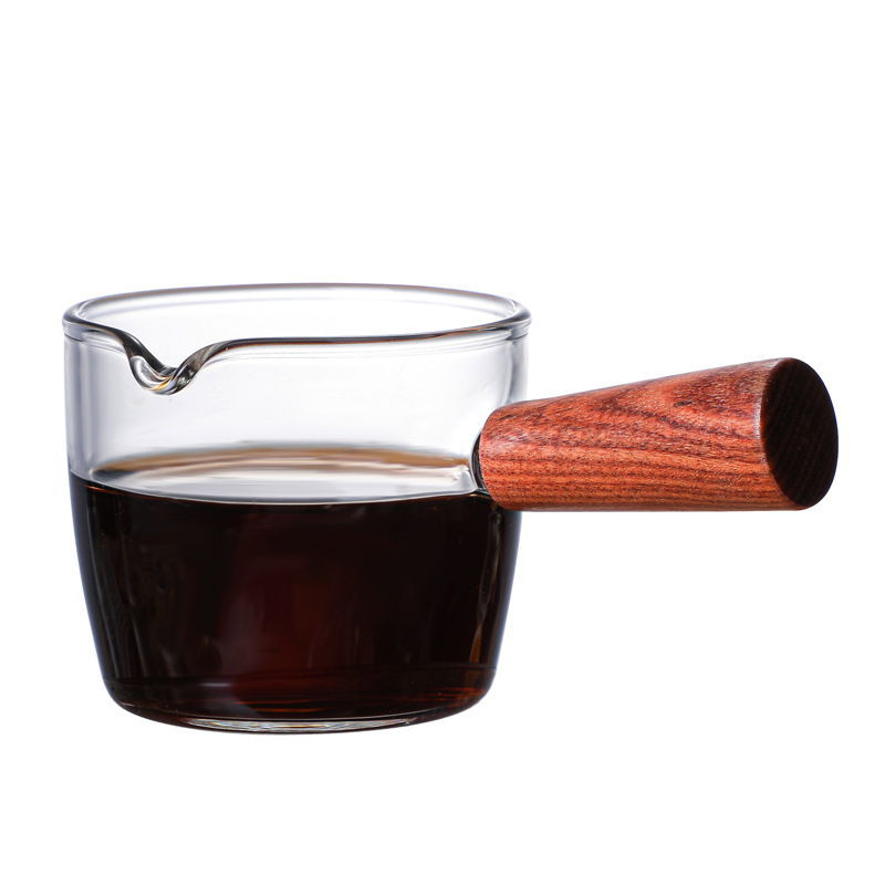 Стеклянная маленькая чашка для молока в японском стиле, мини-чашка для латте, деревянная ручка, кувшин для молока, маленькая чашка для чашки для молока