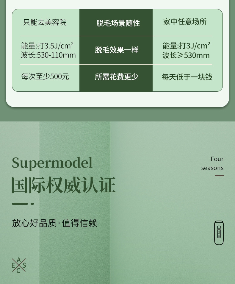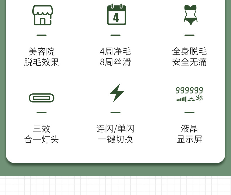 三效合一灯头液晶屏显示连闪/单闪模式全身脱毛