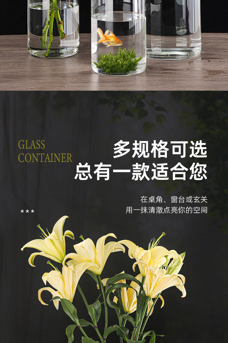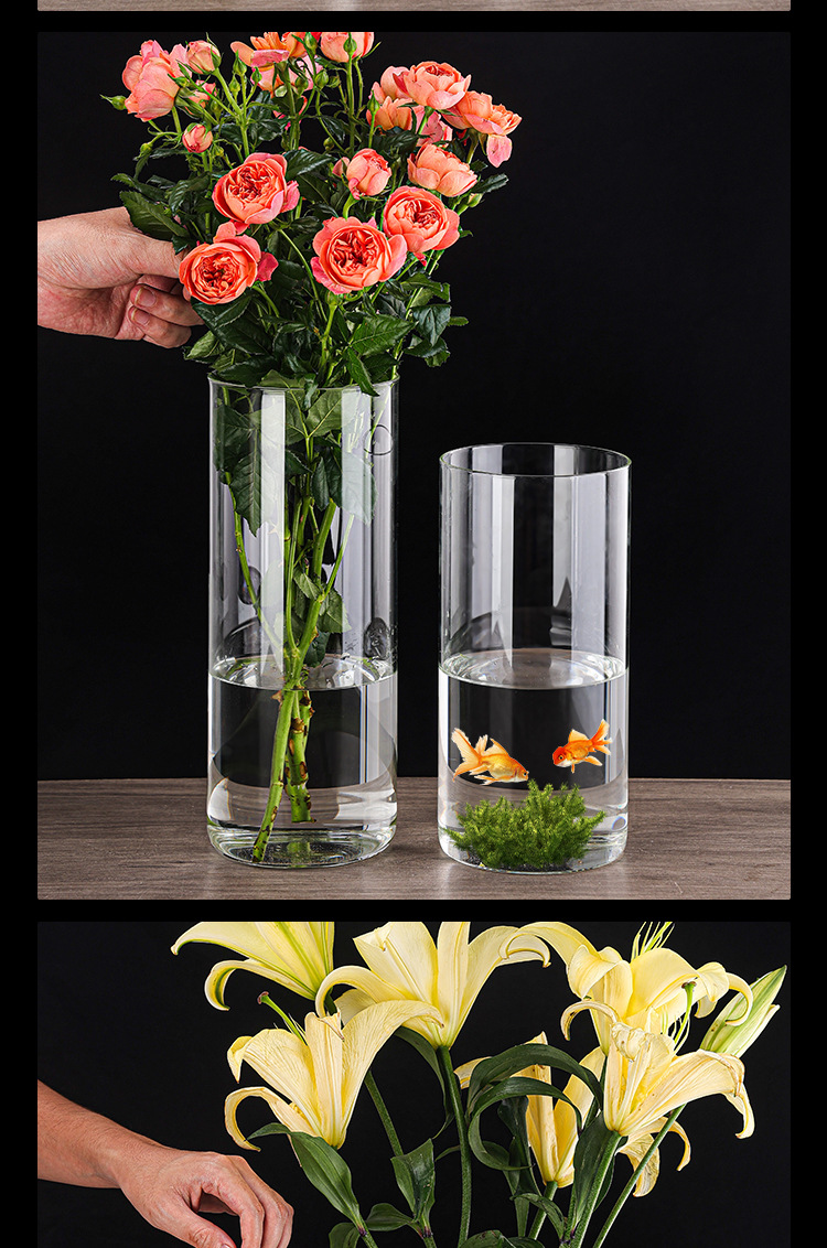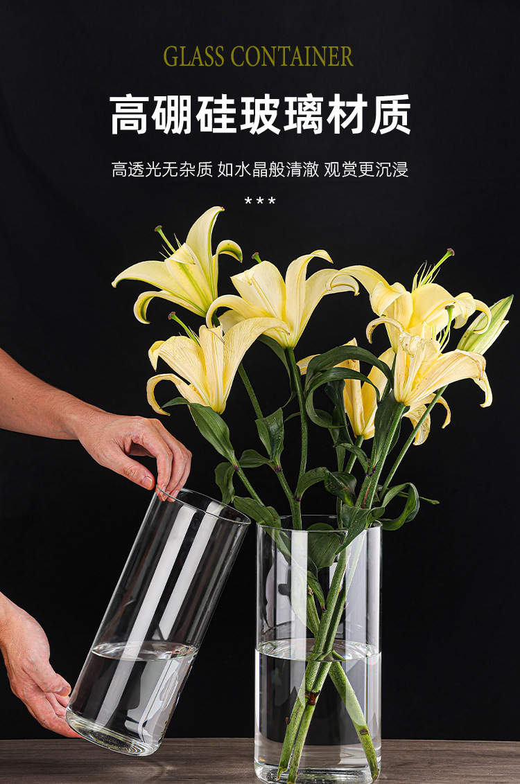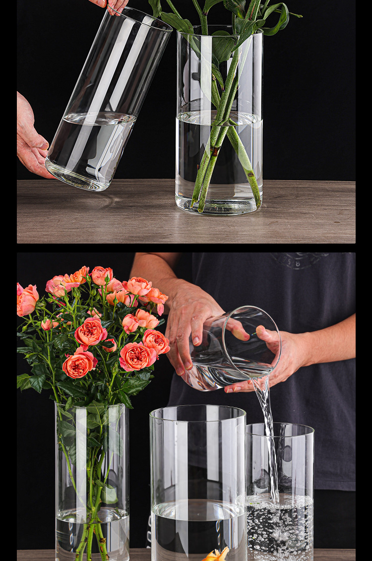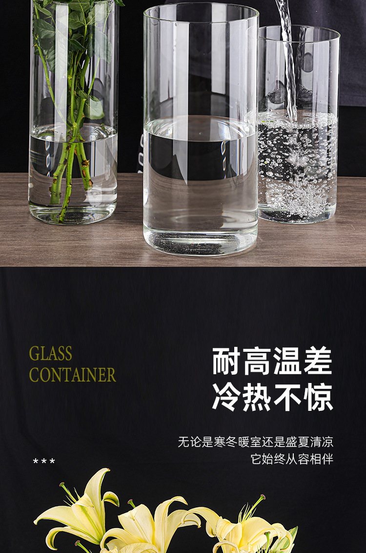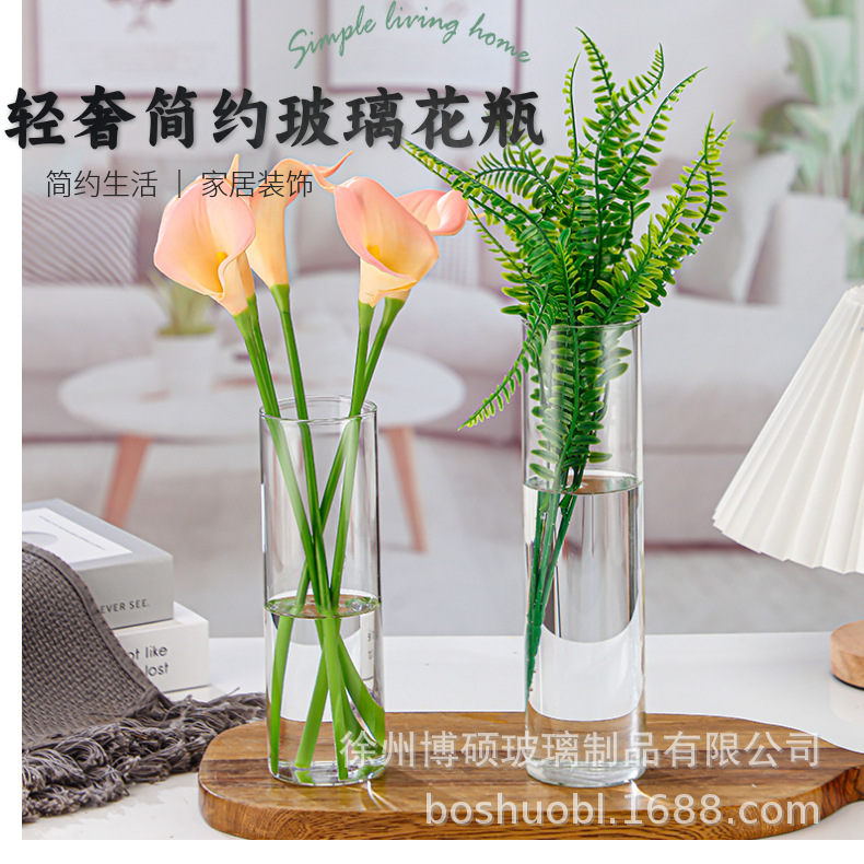 Скандинавская прямая стеклянная ваза, простая гидропонная ваза для цветов, чашка для свечей, доступные роскошные украшения для дома, сушеные цветы