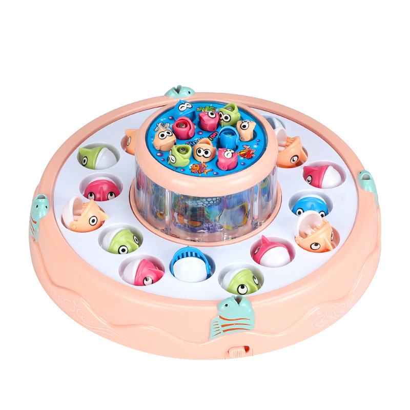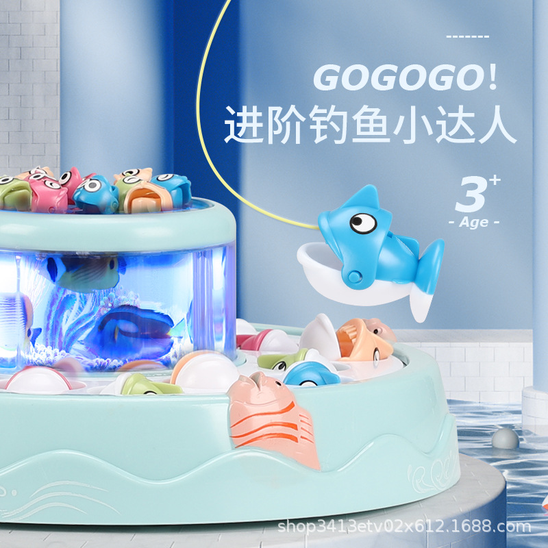 Детская электрическая игрушка для рыбалки, Детская большая двухслойная Магнитная вращающаяся рыбалка, музыкальный свет, интерактивное раннее образование для родителей и детей