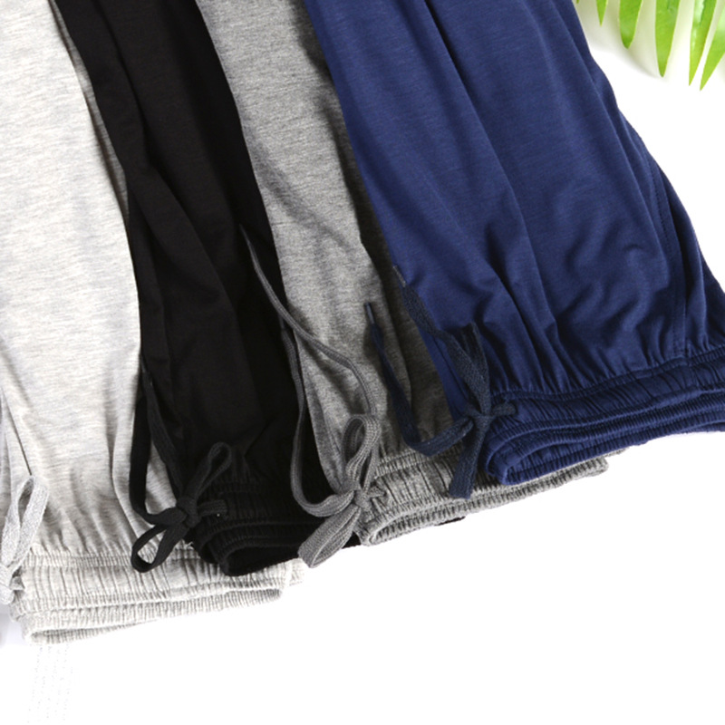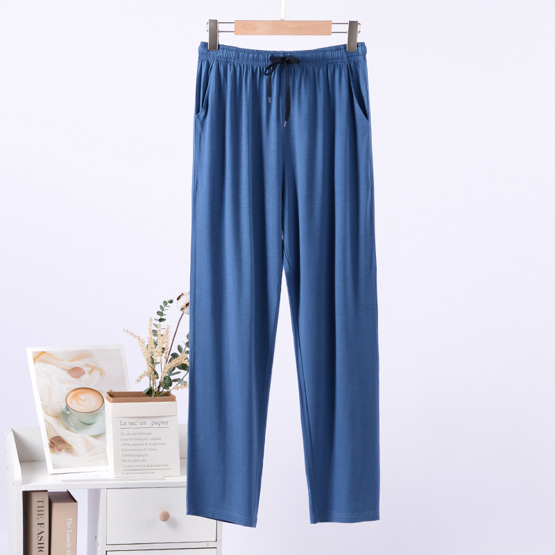 Летние мужские Пижамные брюки из ледяного шелка из модала, домашние брюки, тонкие длинные повседневные свободные брюки больших размеров, спортивные брюки