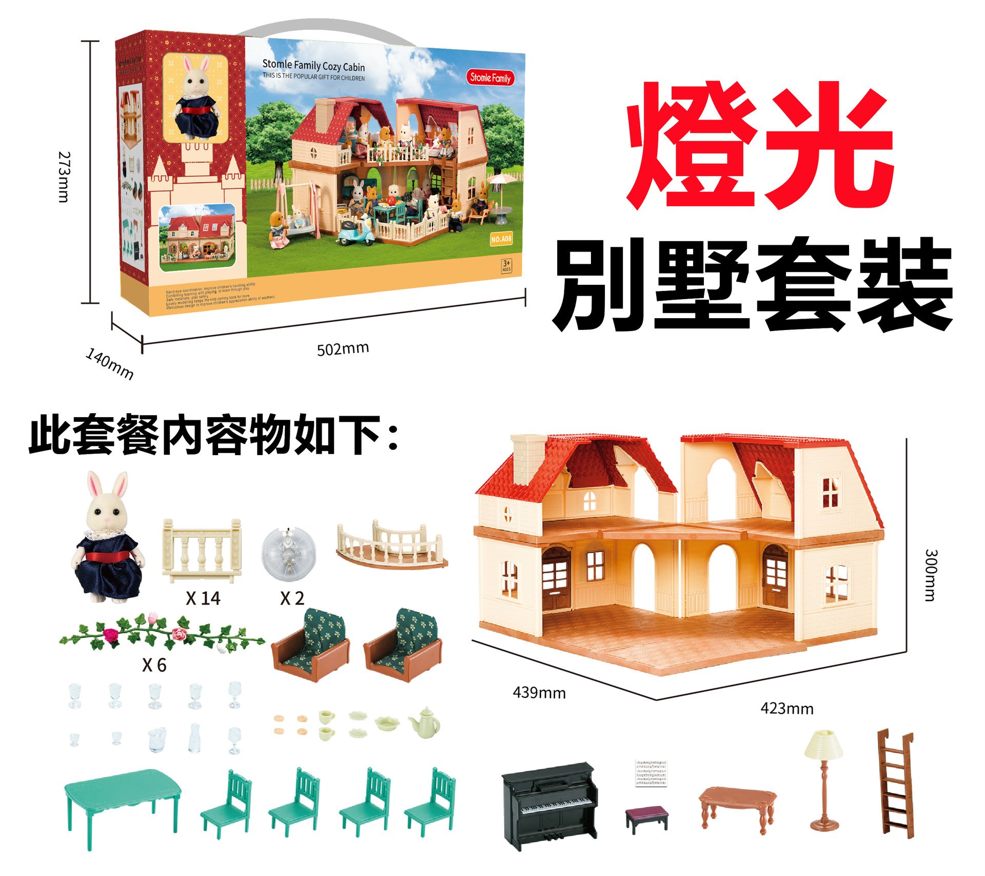 Детский дом Лесное семейное освещение Вилла Дом с животными Мини-кролик Кукольный домик Кухня Собранные игрушки