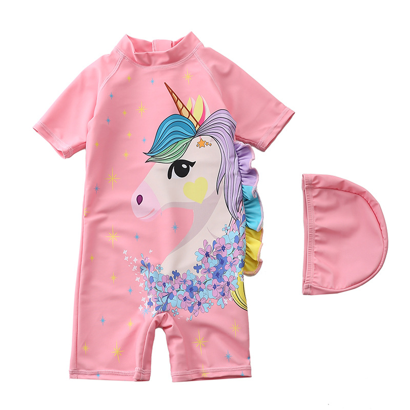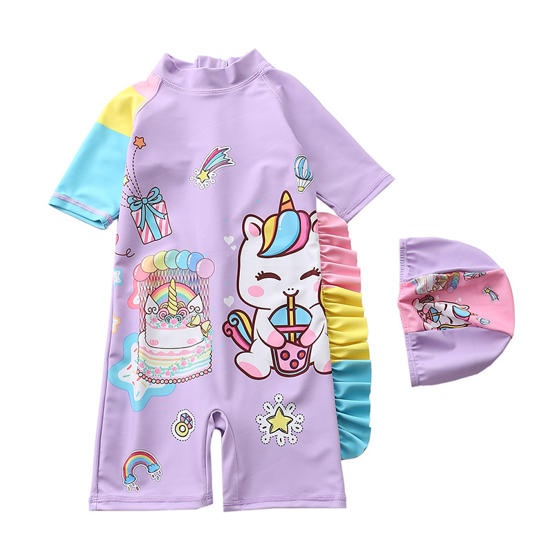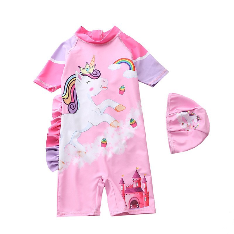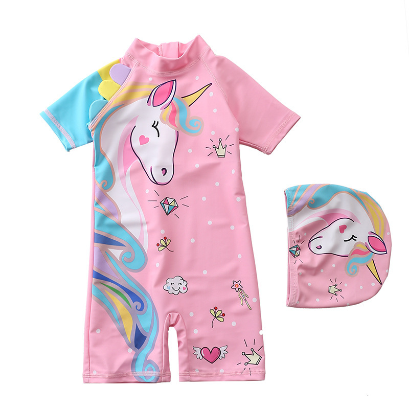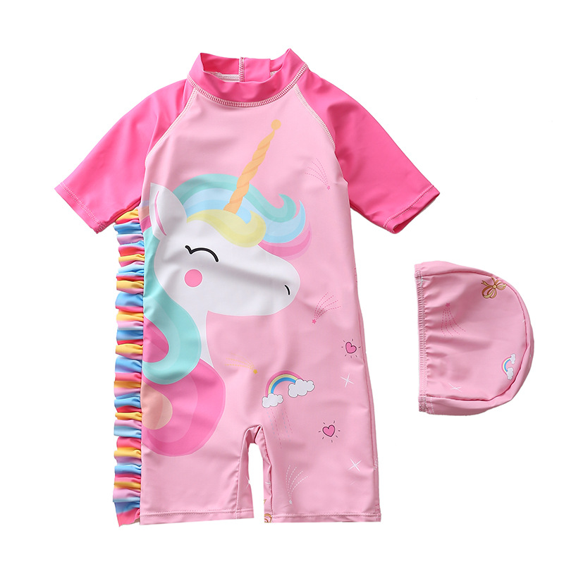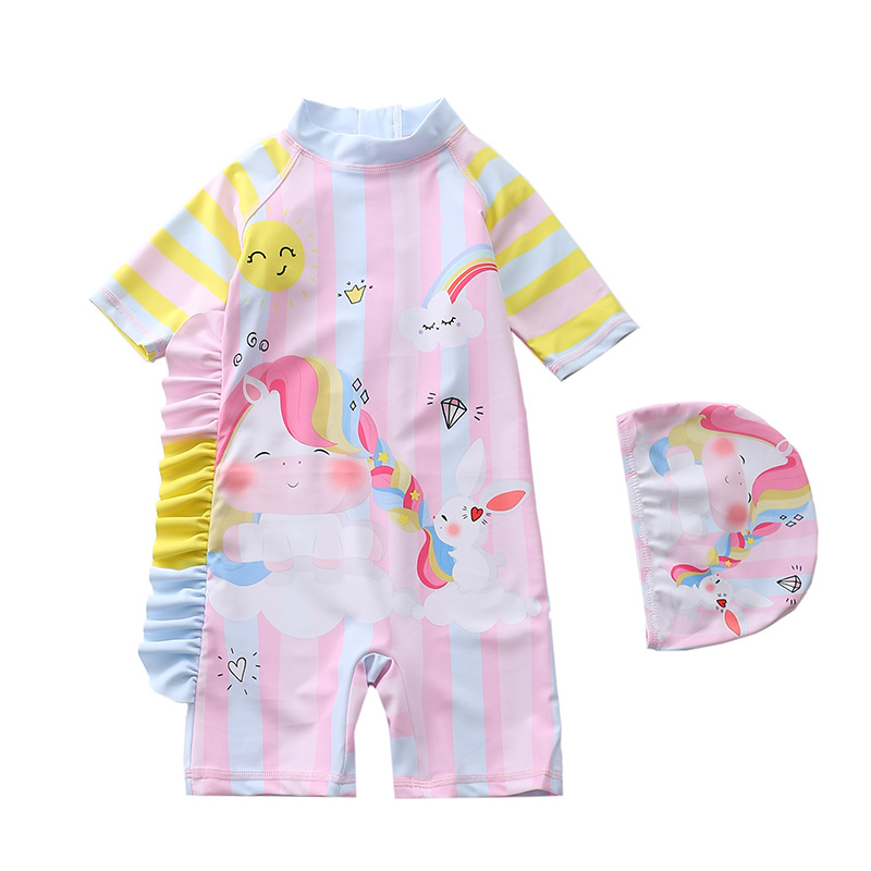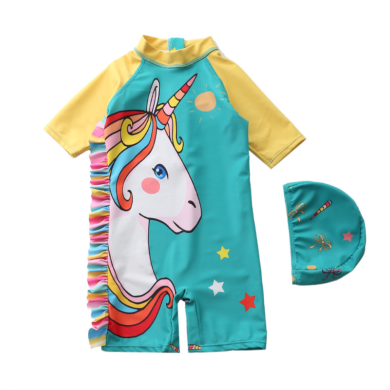Ins Детский купальник Женский сиамский голубой и желтый купальник с единорогом Детский Купальник для девочек из Южной Кореи
