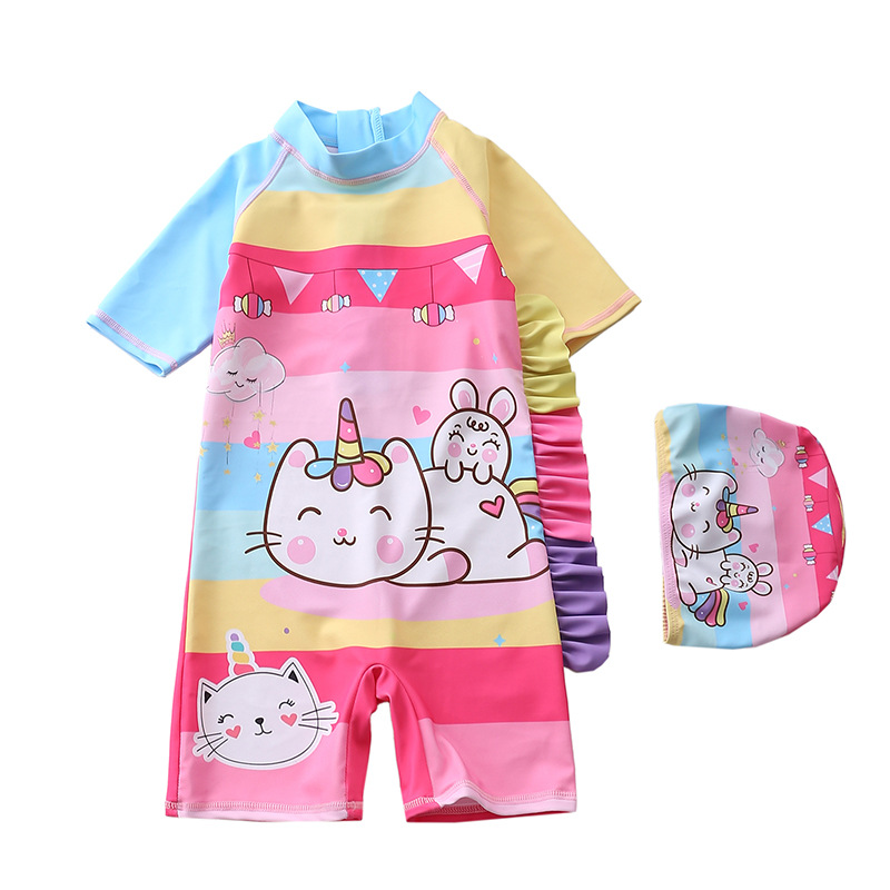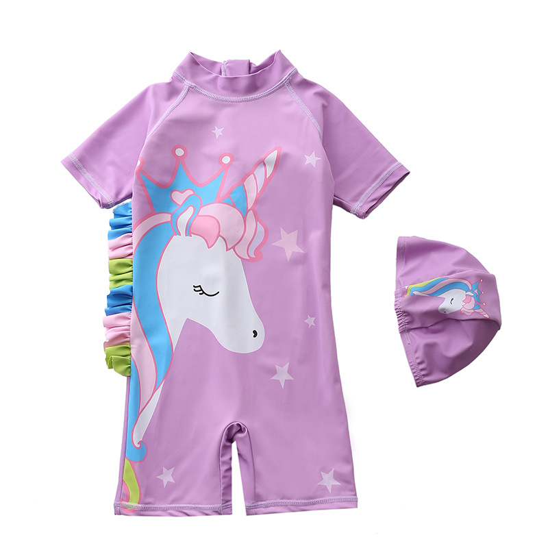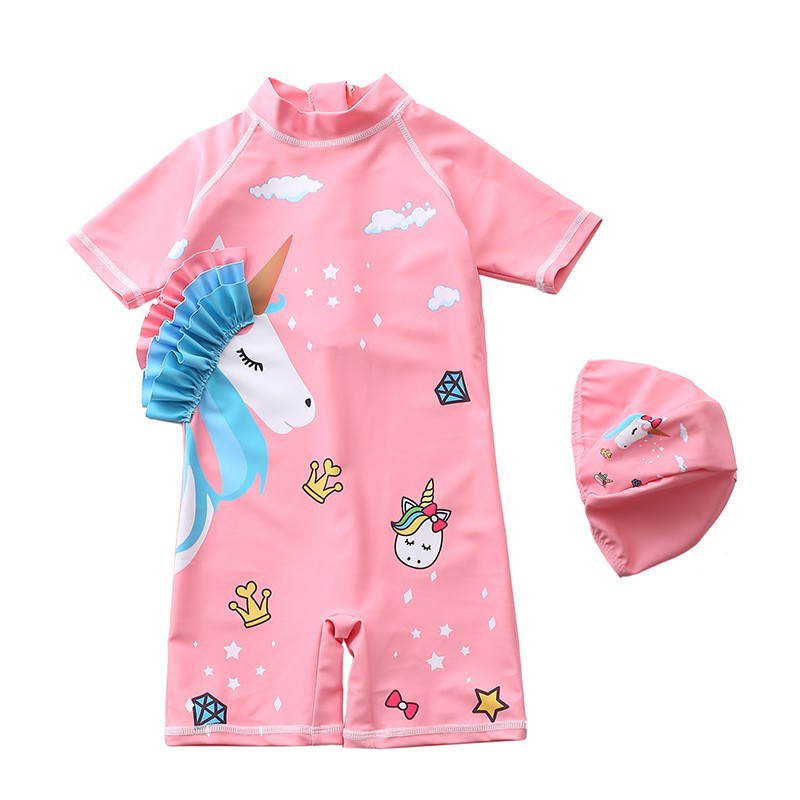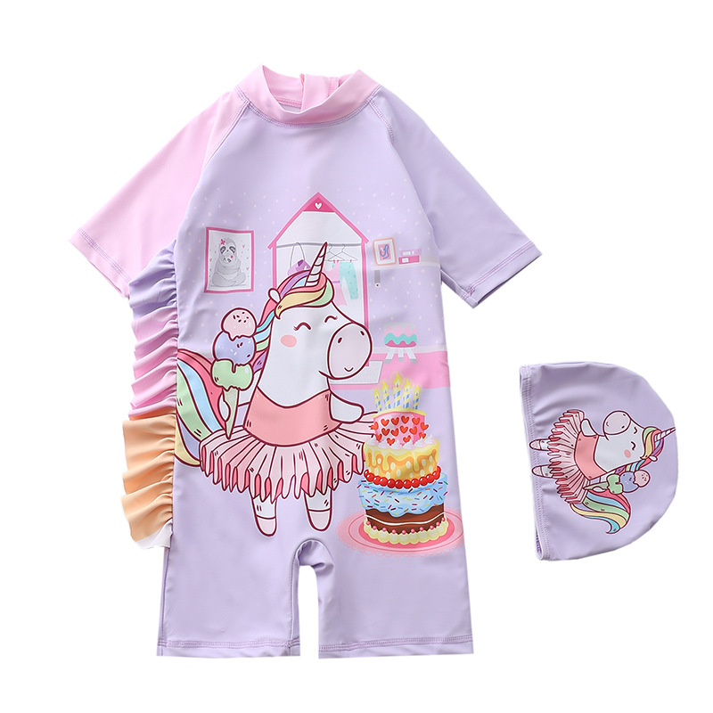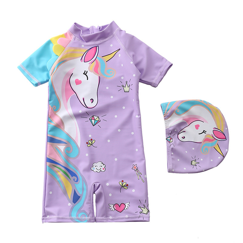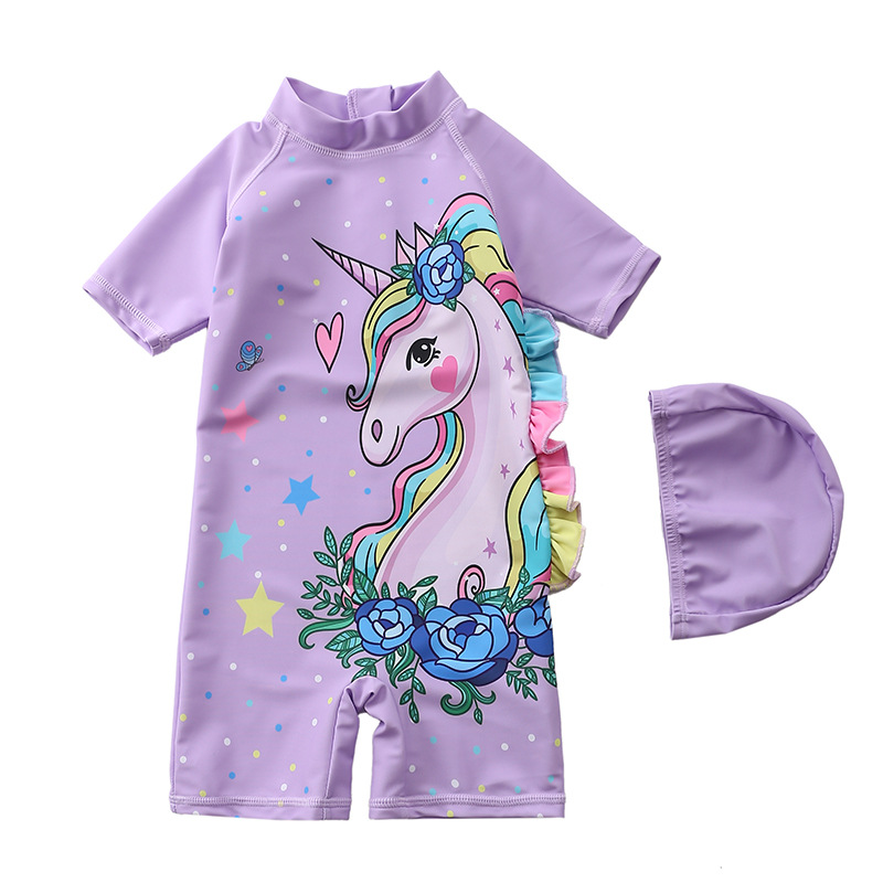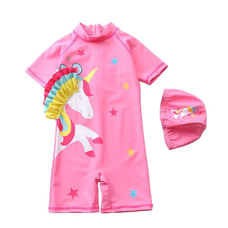 Ins Детский купальник Женский сиамский голубой и желтый купальник с единорогом Детский Купальник для девочек из Южной Кореи