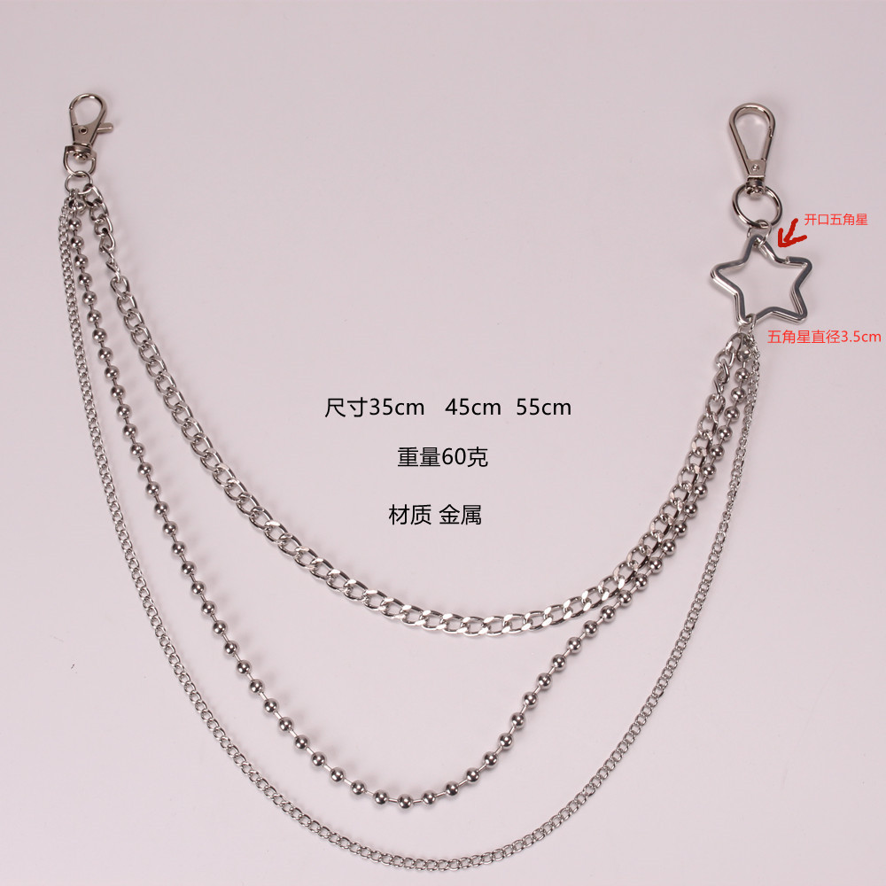 Цепочка для брюк стального цвета; Брючная цепочка с пятиконечной звездой; Цепочка для брюк с подвеской «Звезда, Луна, Планета»; Цепочка для брюк с подвеской в виде ромбовидного замка; Двухслойная цепочка для брюк с пламенем; Цепочка-шарик, подвеска в виде пятиконечной звезды, цепочка для брюк; Цепочка-шарик с подвеской на один замок, цепочка для брюк; цепочка для брюк с солнцем, луной и звездой