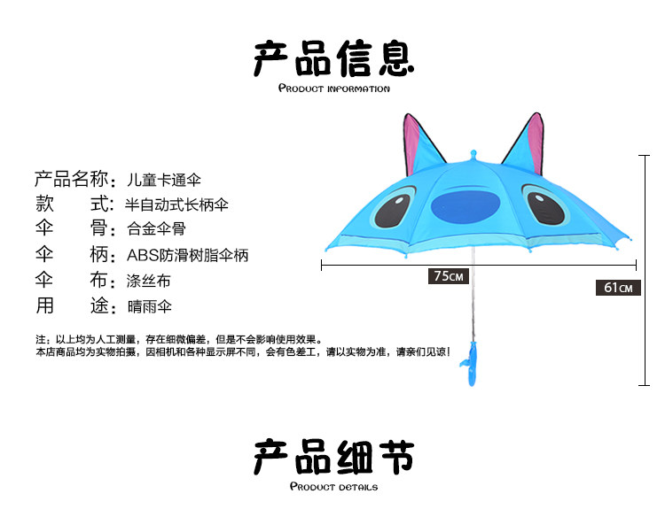本款有0-2岁伞面直径45厘米左右较小,不适合挡雨挡太阳哦!适合儿童玩。
