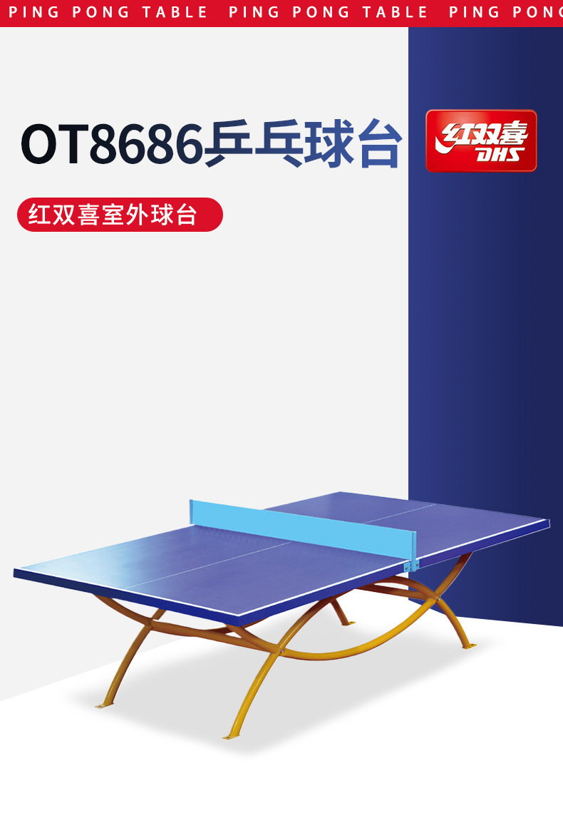 Настольный теннисный стол Authentic Double Happiness для улицы, модель OT8686, с водонепроницаемым и солнцезащитным чехлом, оптовая продажа для улицы