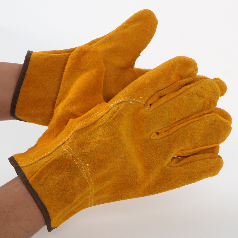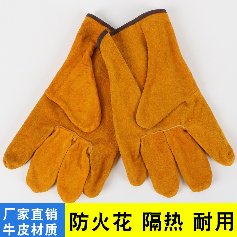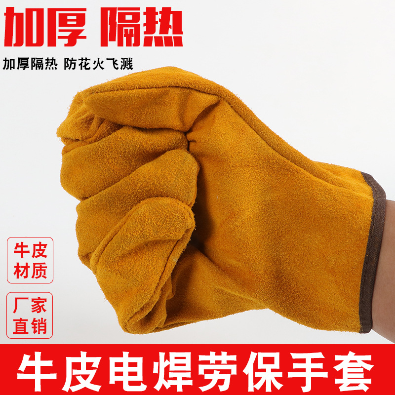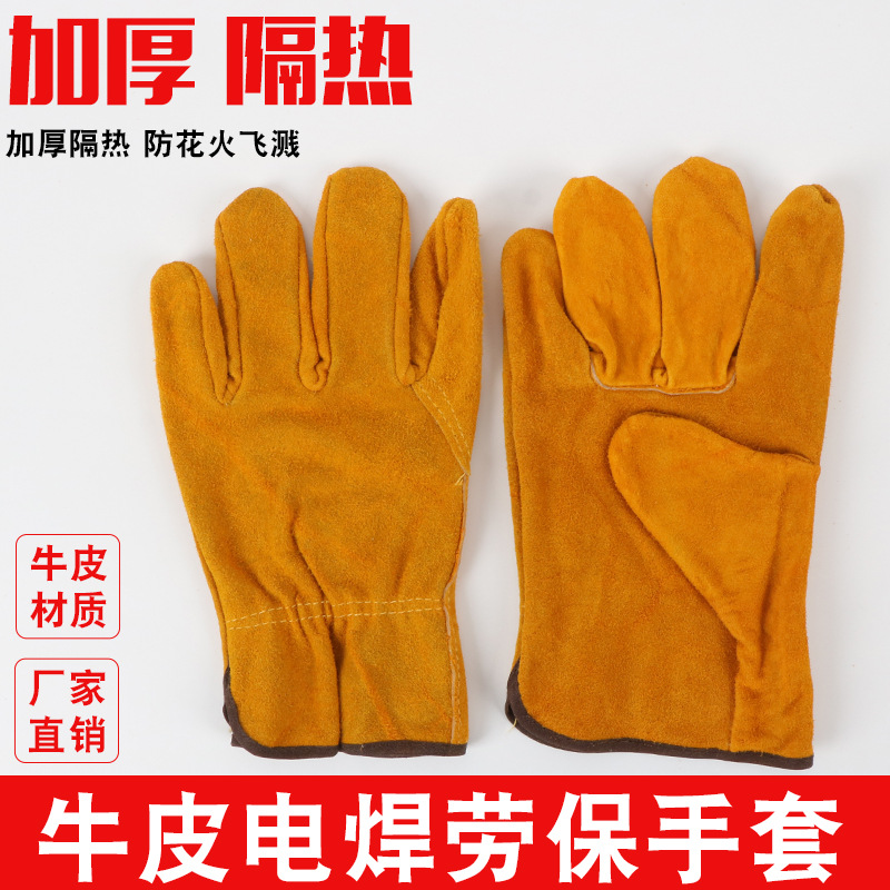 Двухслойные перчатки для электросварки из воловьей кожи, короткие износостойкие термостойкие защитные сварочные двухслойные желтые перчатки для водителя