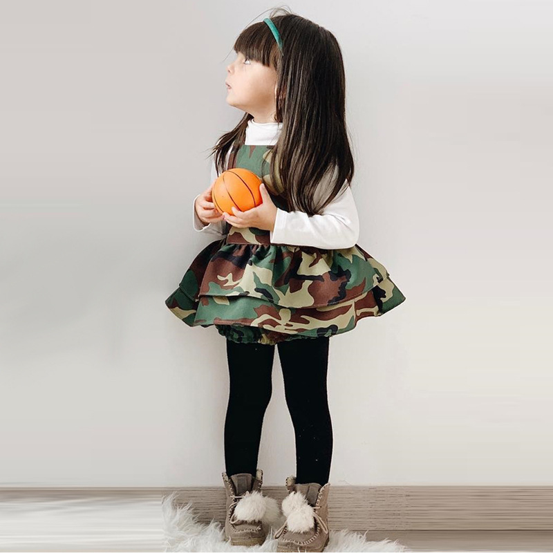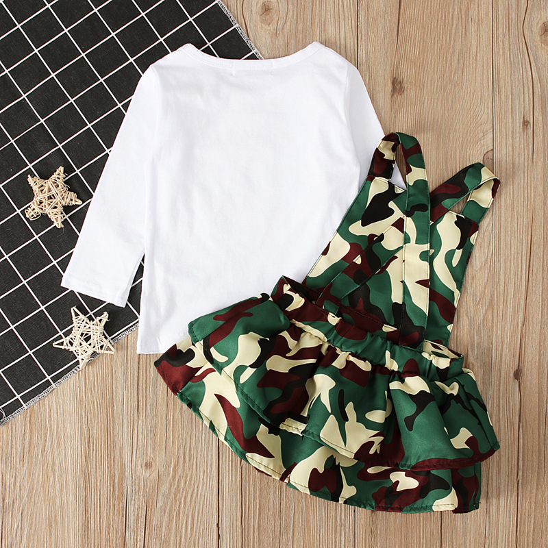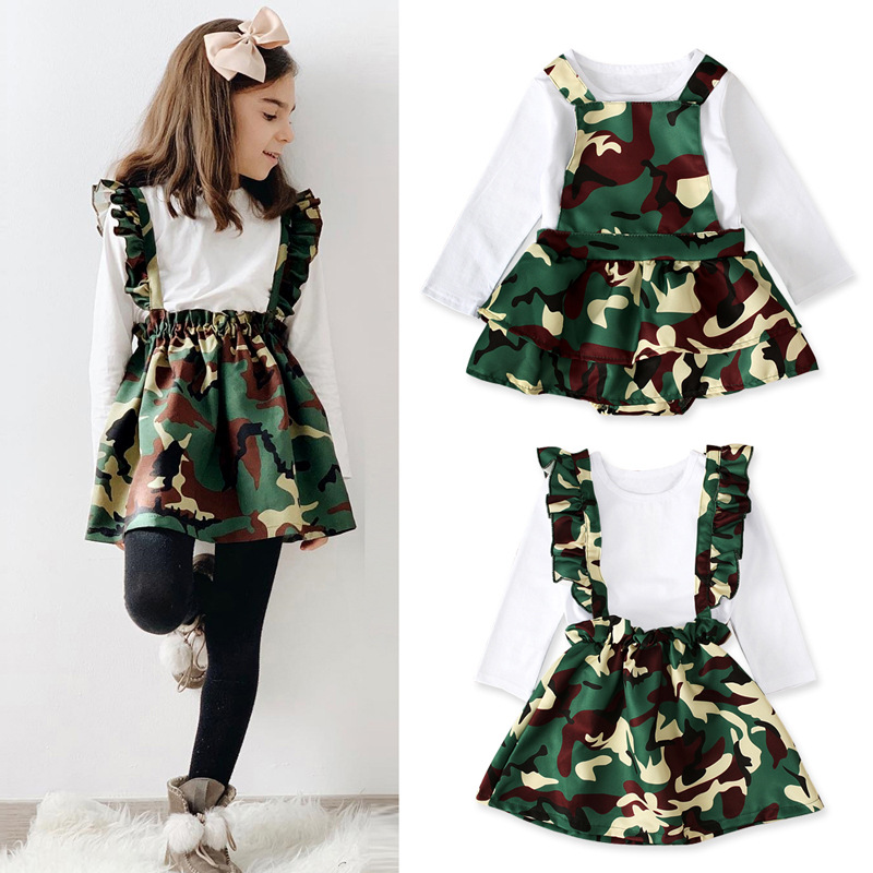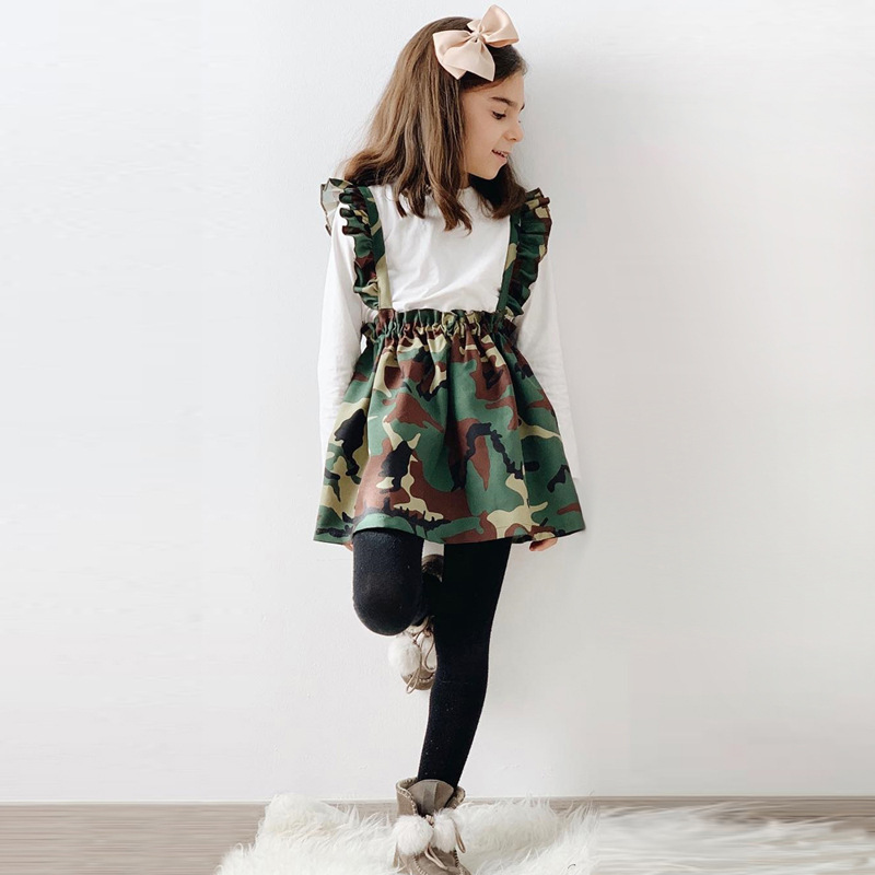 Девушка европейская и американская весна и осень с длинными рукавами топы с камуфляжными ремешками юбки сестры два комплекта детской одежды ins