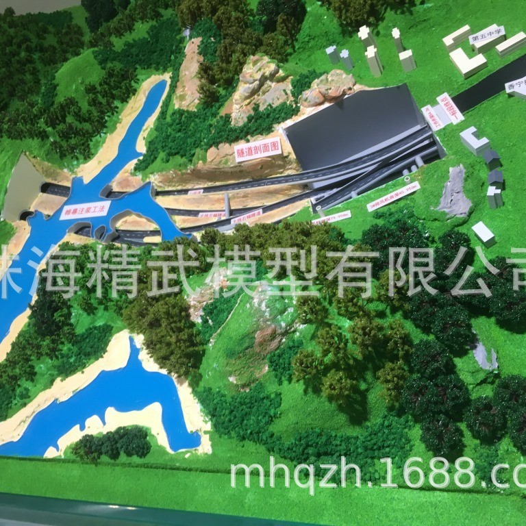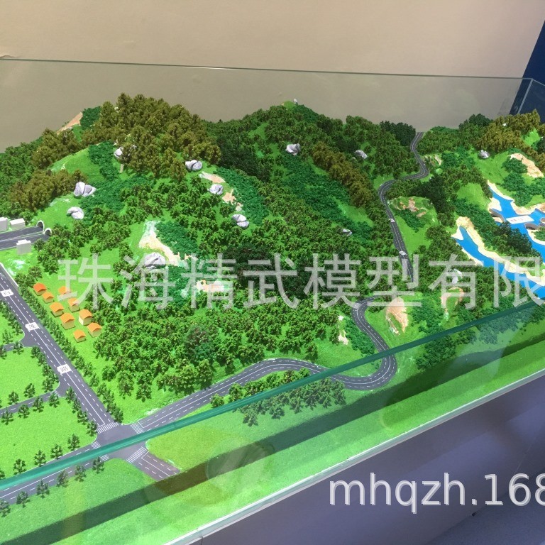 (2)、水系:海、河、湖等水面,制作中对较大的水面部分采用水纹玻璃铺设,表面铺设蓝色材料。