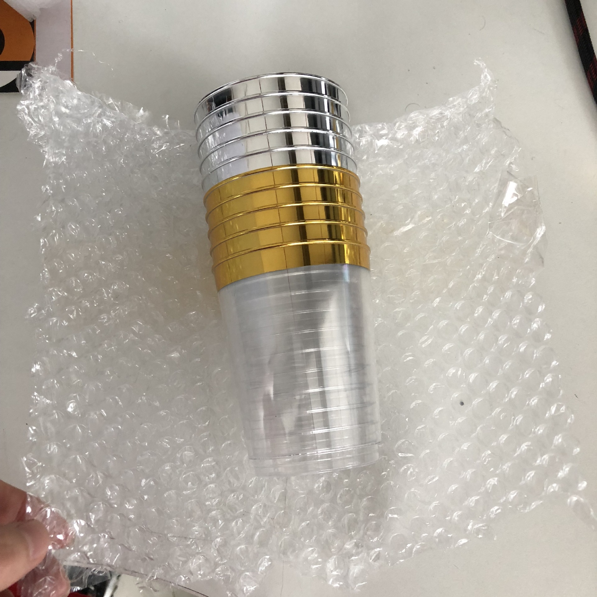 10 унций одноразовые серебряный край золотой край розового золота край чашки Прозрачный Бронзовый Кубок PS материал пластик