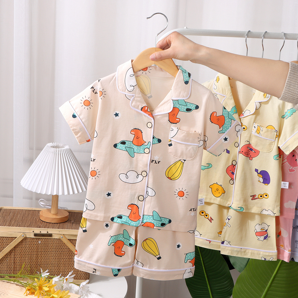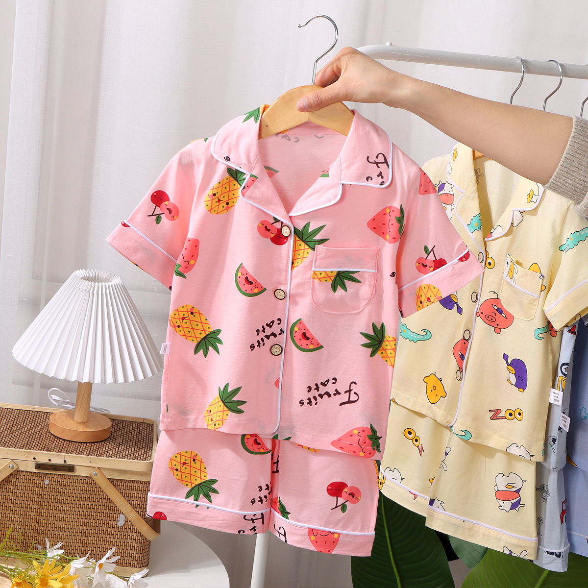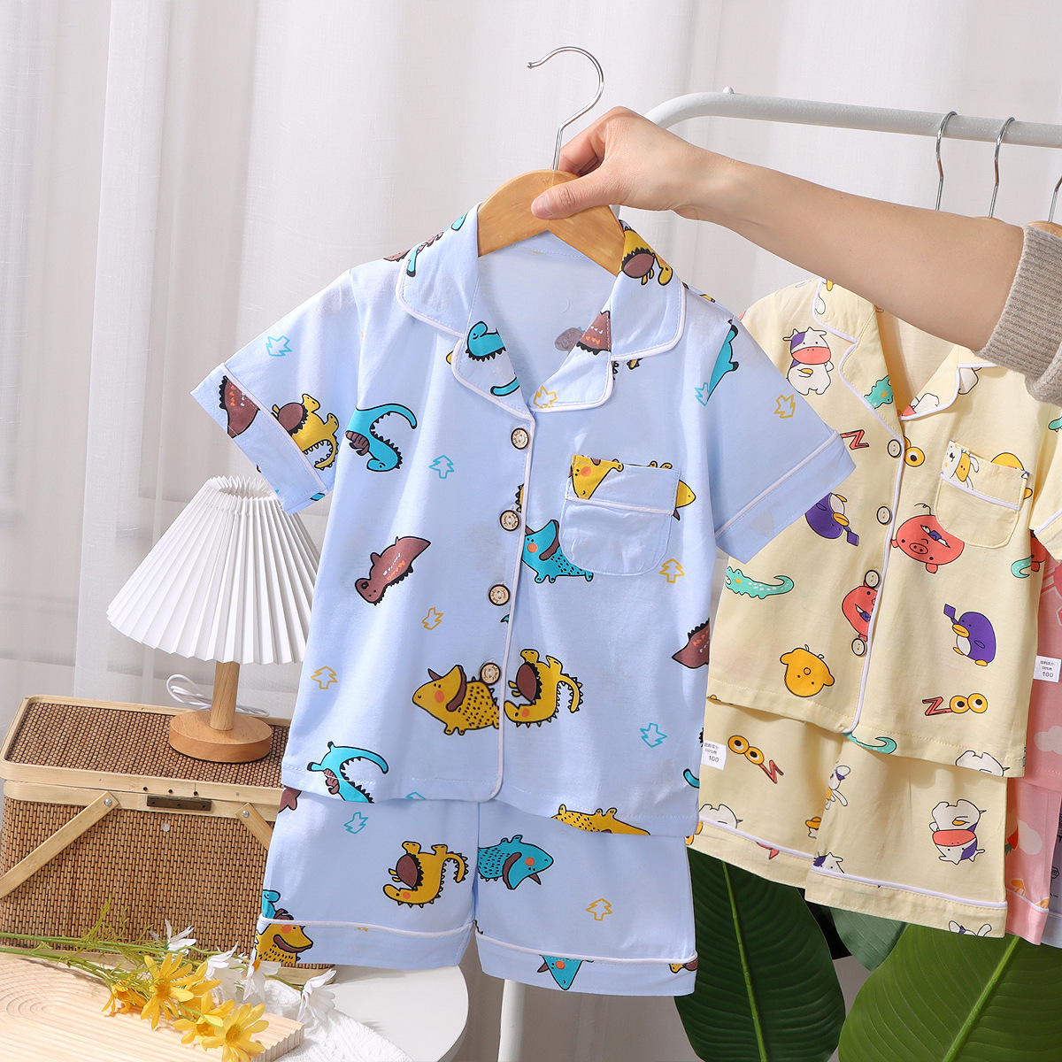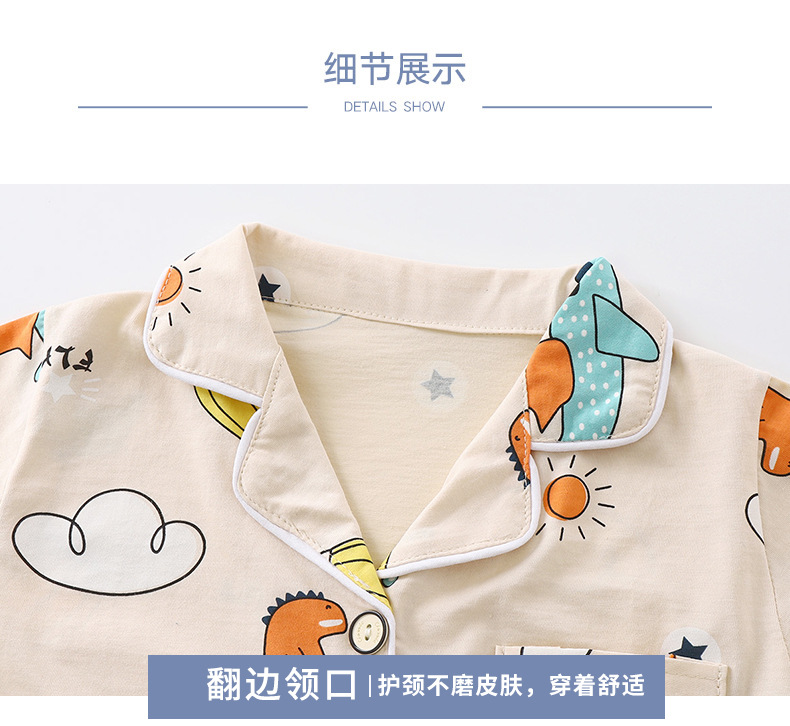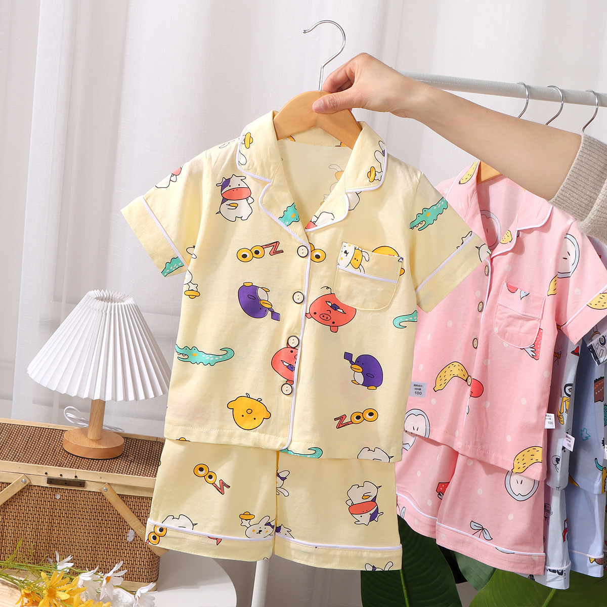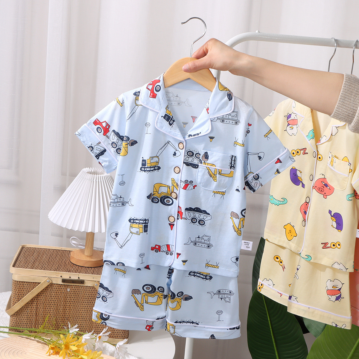 Новый комплект домашней одежды для детей 2026 года, тонкие хлопковые пижамы для детей среднего возраста, одежда для кондиционированных помещений для учащихся начальной школы, детский комплект с коротким рукавом