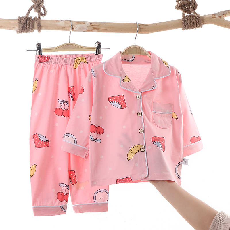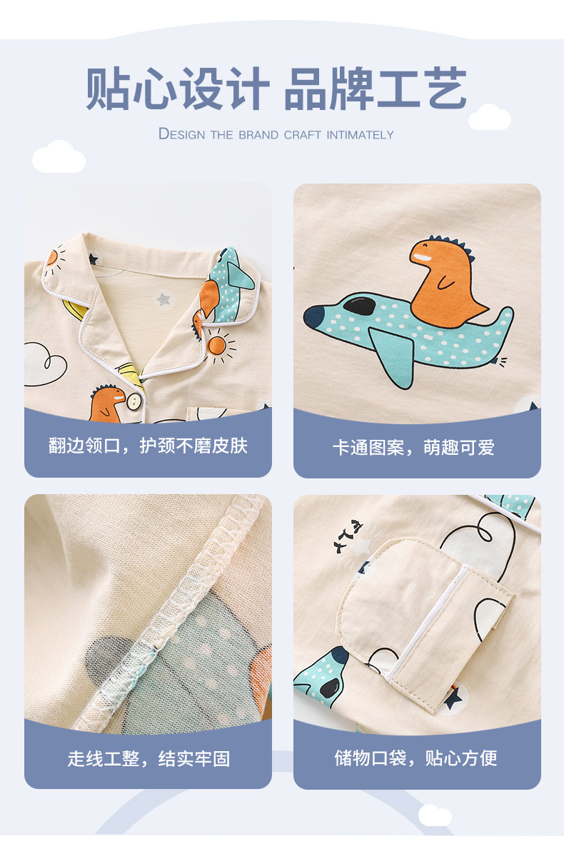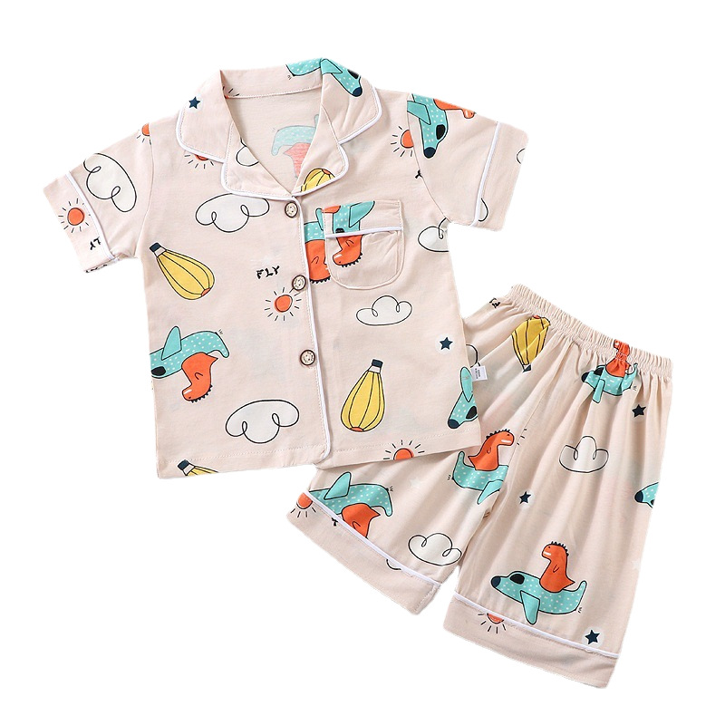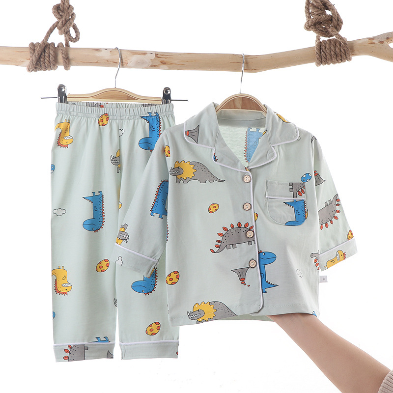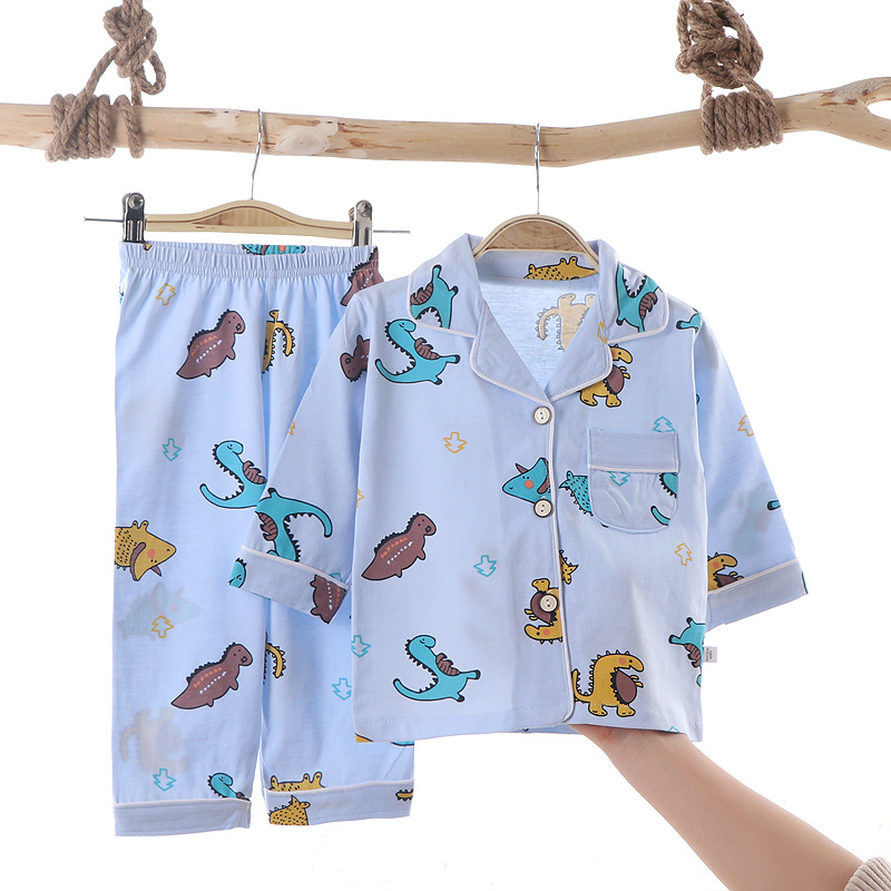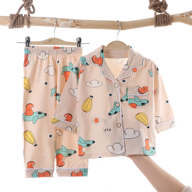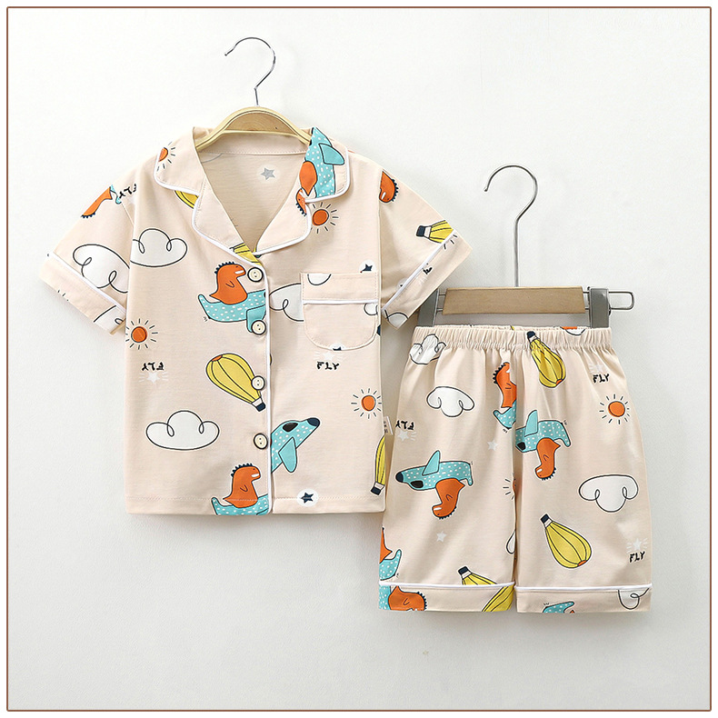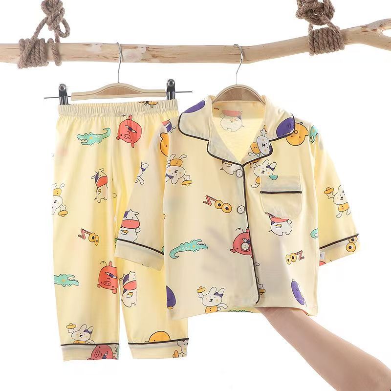 Новый комплект домашней одежды для детей 2026 года, тонкие хлопковые пижамы для детей среднего возраста, одежда для кондиционированных помещений для учащихся начальной школы, детский комплект с коротким рукавом