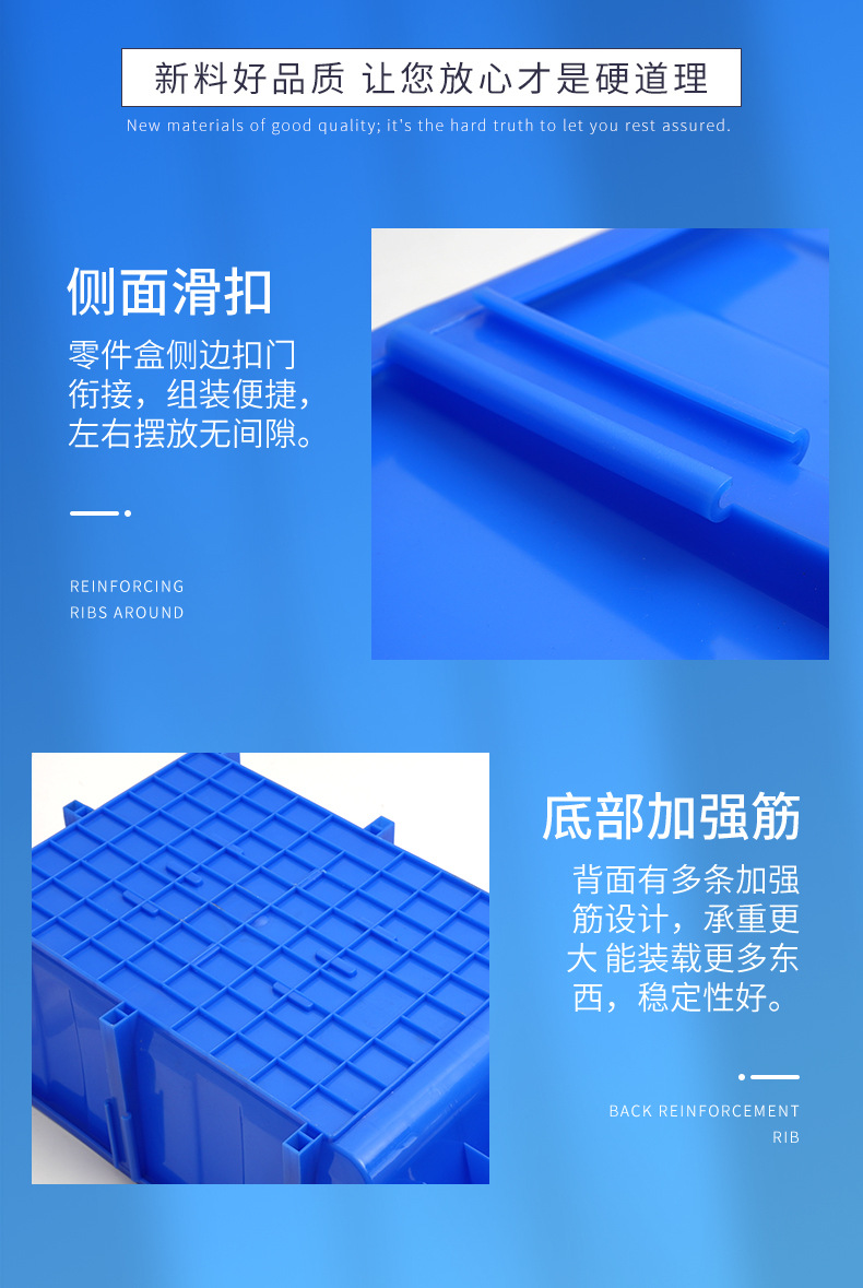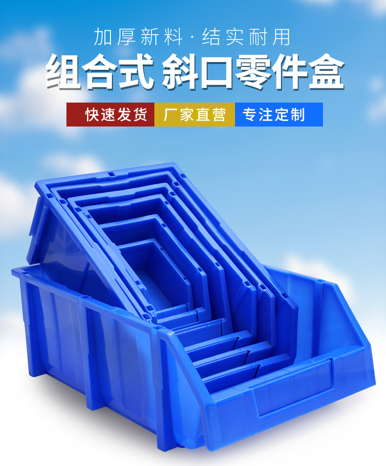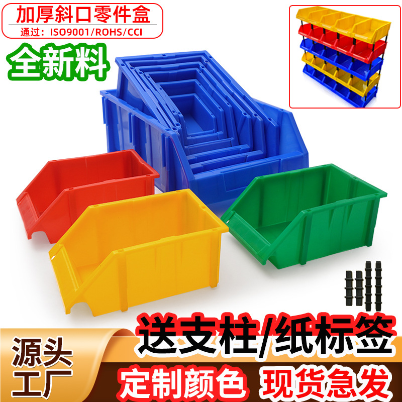 Утолщенный наклонный ящик для хранения деталей, пластиковый контейнер для метизов и автомобильных запчастей, вертикальный наклонный складской ящик для материалов, устанавливаемый на полку.