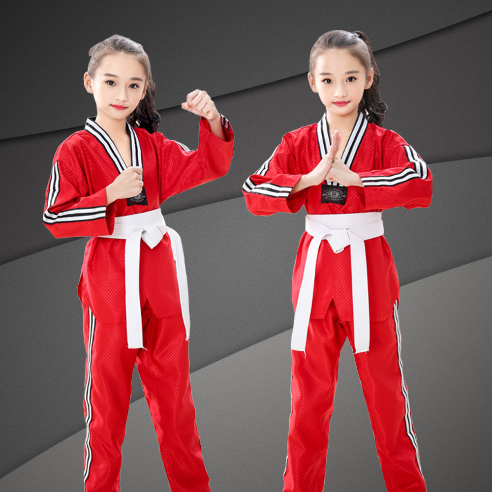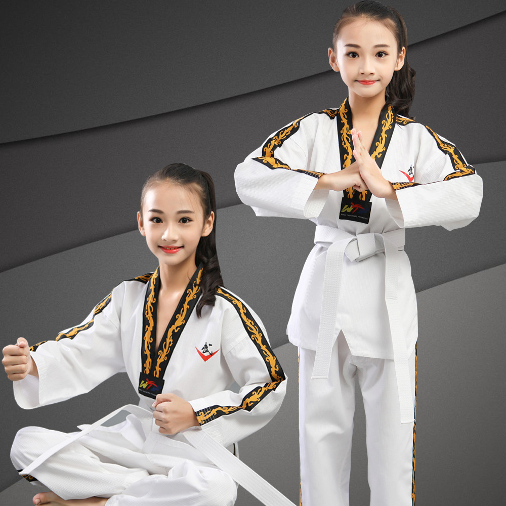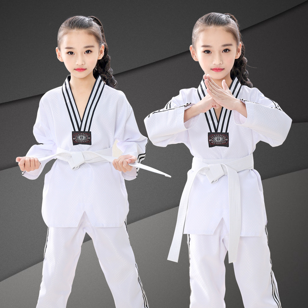 Детская осенне-зимняя тренировочная одежда для взрослых с длинными рукавами в хлопковую полоску и с короткими рукавами, вышитая одежда для тхэквондо с принтом