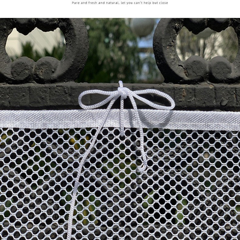 用法:把塑料鎖條穿過網布的小孔,鎖住陽台杆;綁繩也是穿過網布小孔,綁住陽台杆即可,記得把網布拉緊一點再綁。