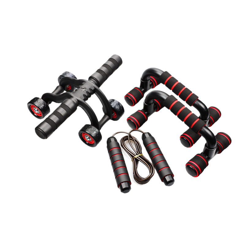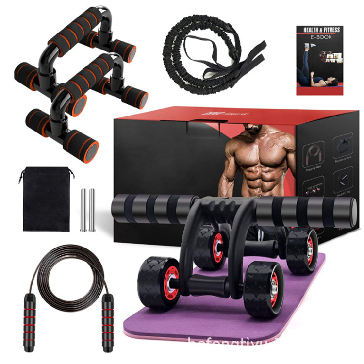 Четырехколесное брюшное колесо AB I-образный кронштейн для отжимания, скакалка, вспомогательный костюм с натяжным тросом, тренажер для мышц живота