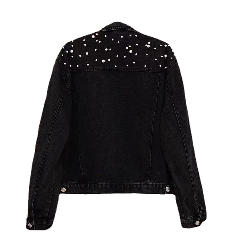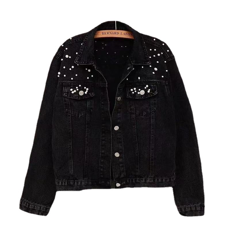 Трансграничная весна и осень в Корейском стиле, тяжелая промышленная Мода, короткое джинсовое пальто с бисером, женская Свободная джинсовая одежда больших размеров в моде