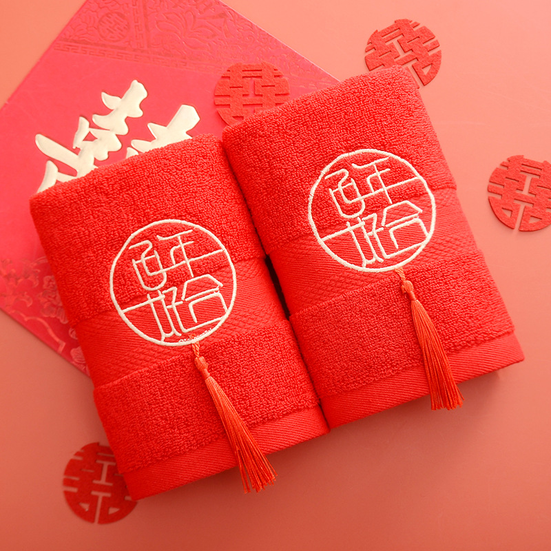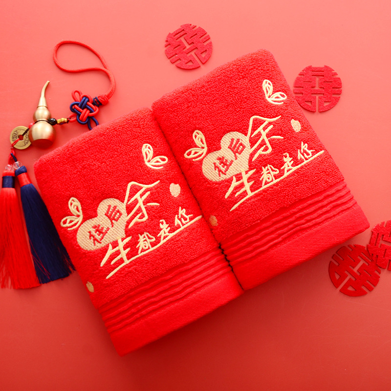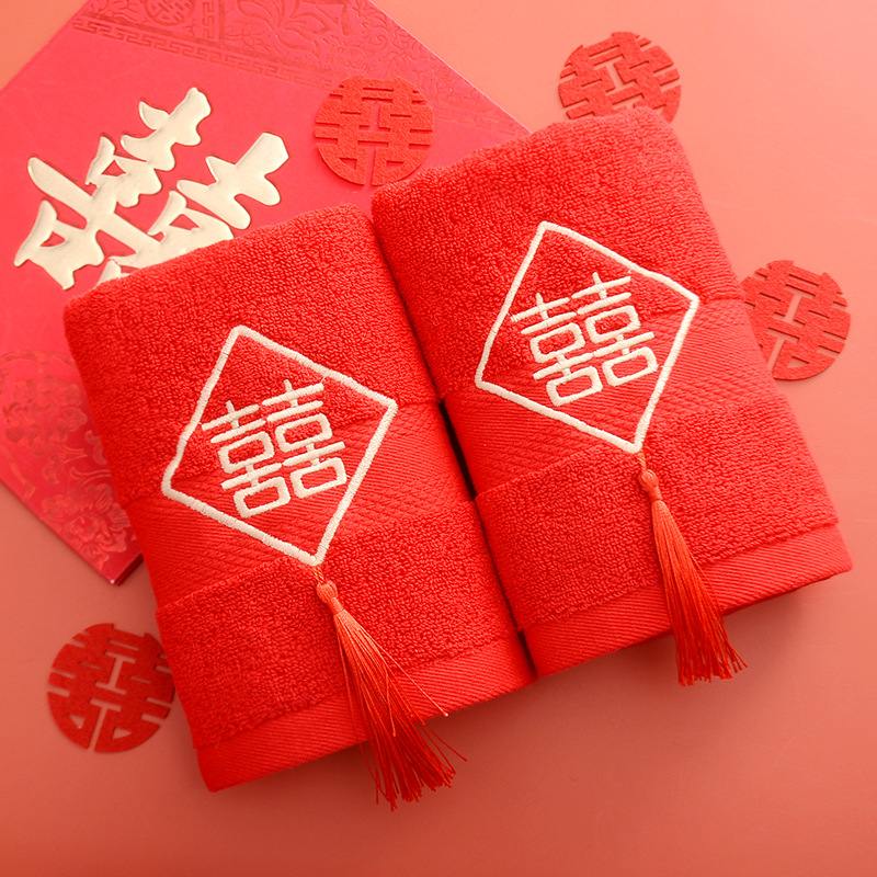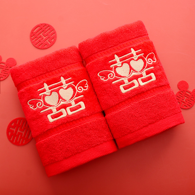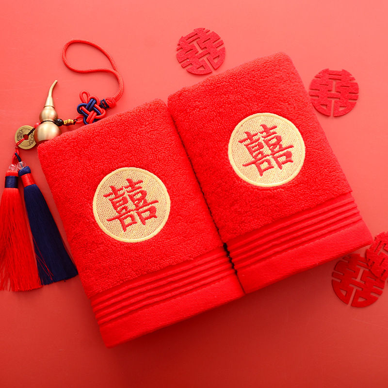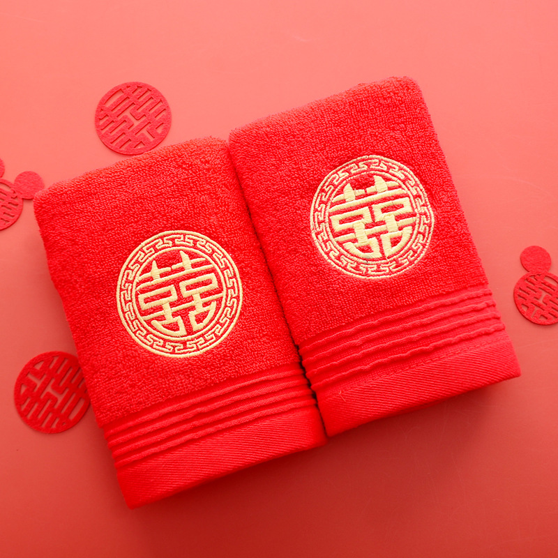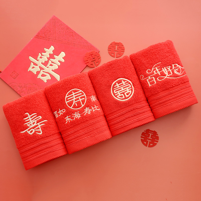 Сто лет Хорошая спичка красный праздничный Вышитый свадебный красный полотенце пара хлопка подарок на день рождения пара Xi слово полотенце для лица
