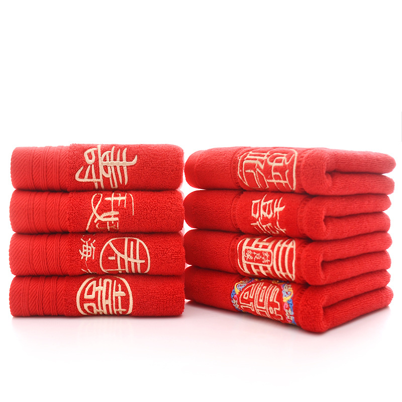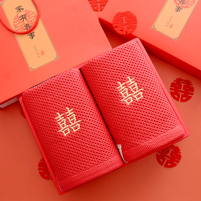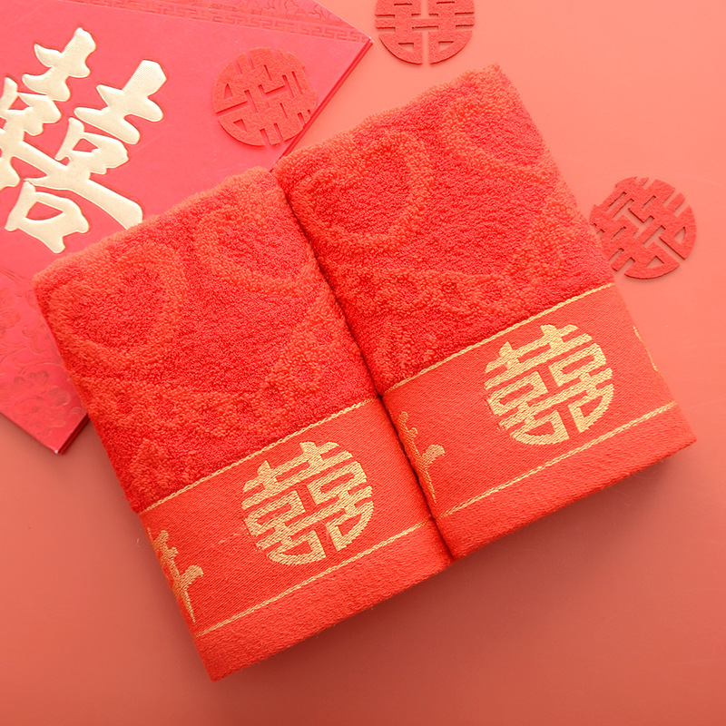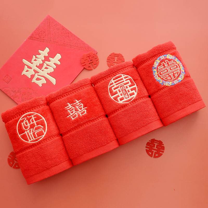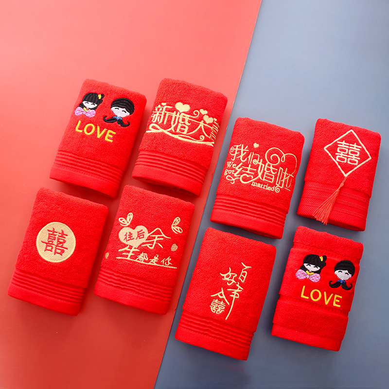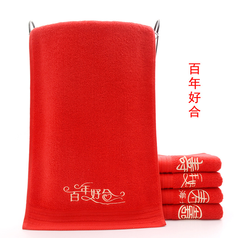 Сто лет Хорошая спичка красный праздничный Вышитый свадебный красный полотенце пара хлопка подарок на день рождения пара Xi слово полотенце для лица