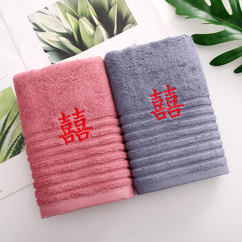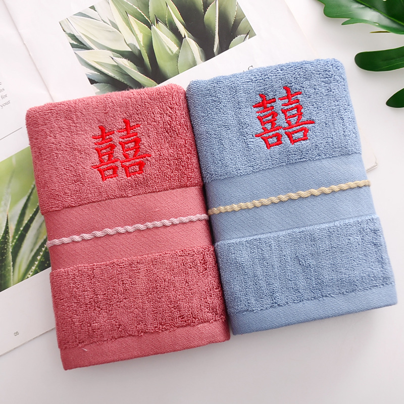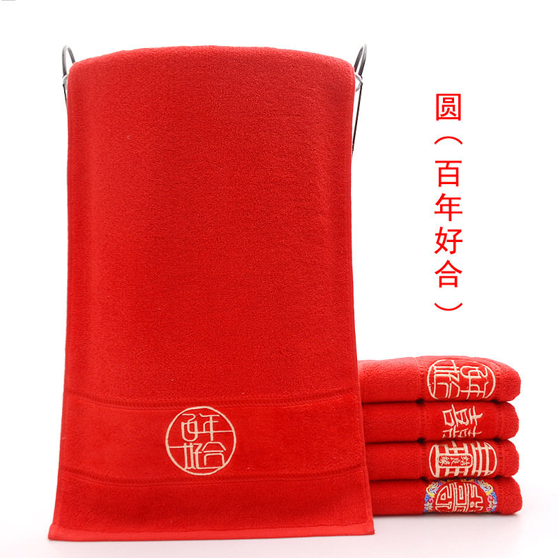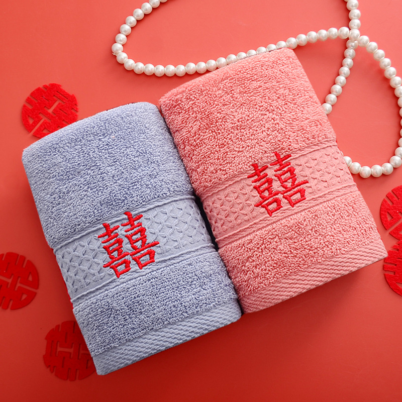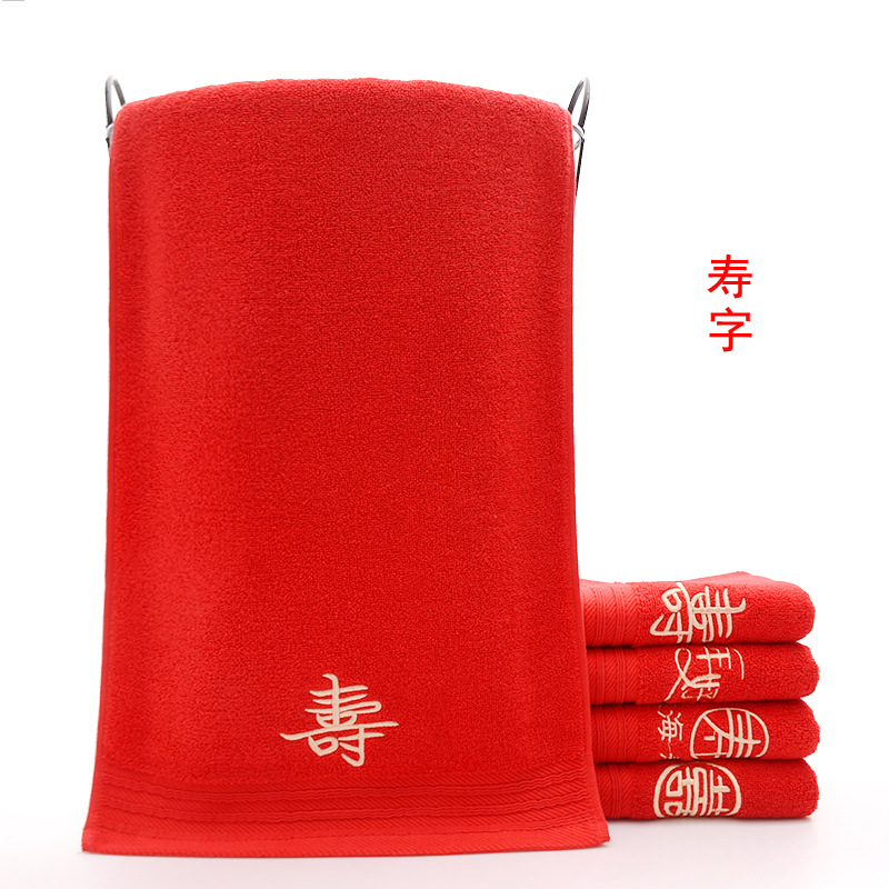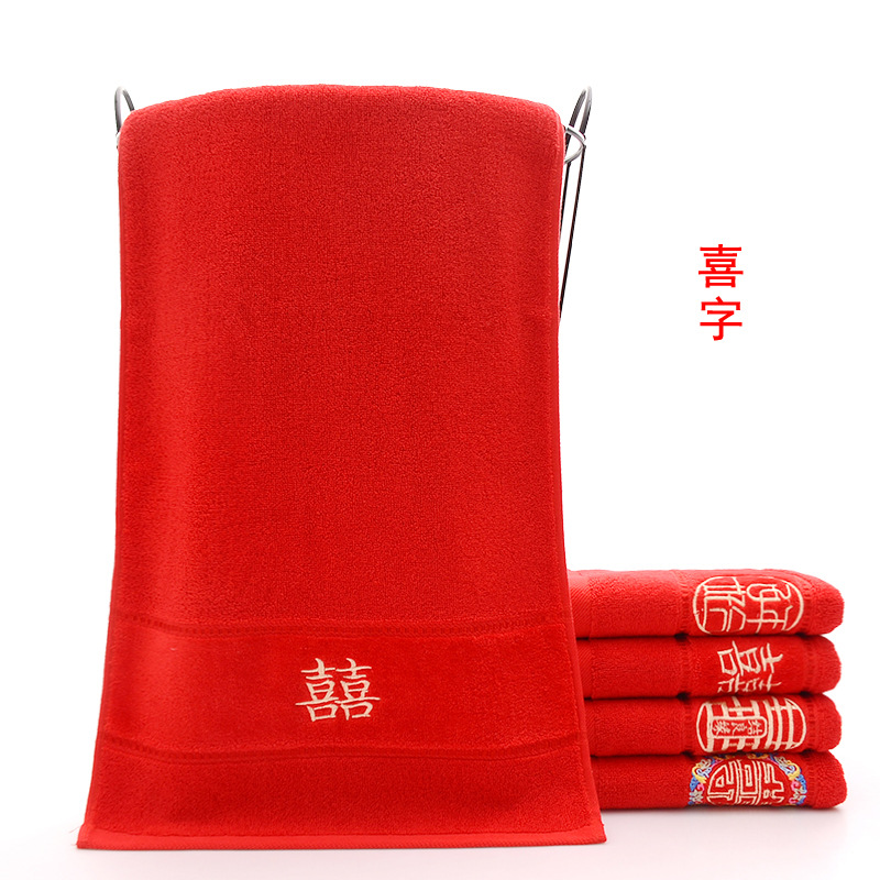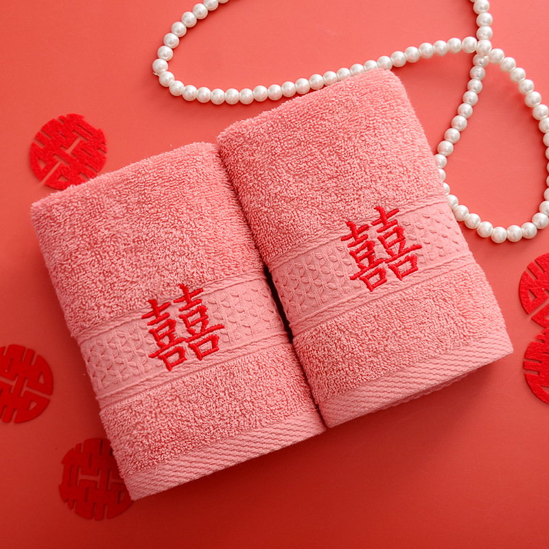 Сто лет Хорошая спичка красный праздничный Вышитый свадебный красный полотенце пара хлопка подарок на день рождения пара Xi слово полотенце для лица