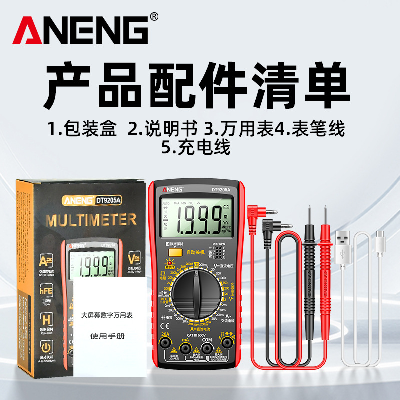 Интеллектуальный DT9205A мультиметр Высокая точность цифровой мультиметр Многофункциональный антигоревший ремонт Электрик Специализированный счетчик
