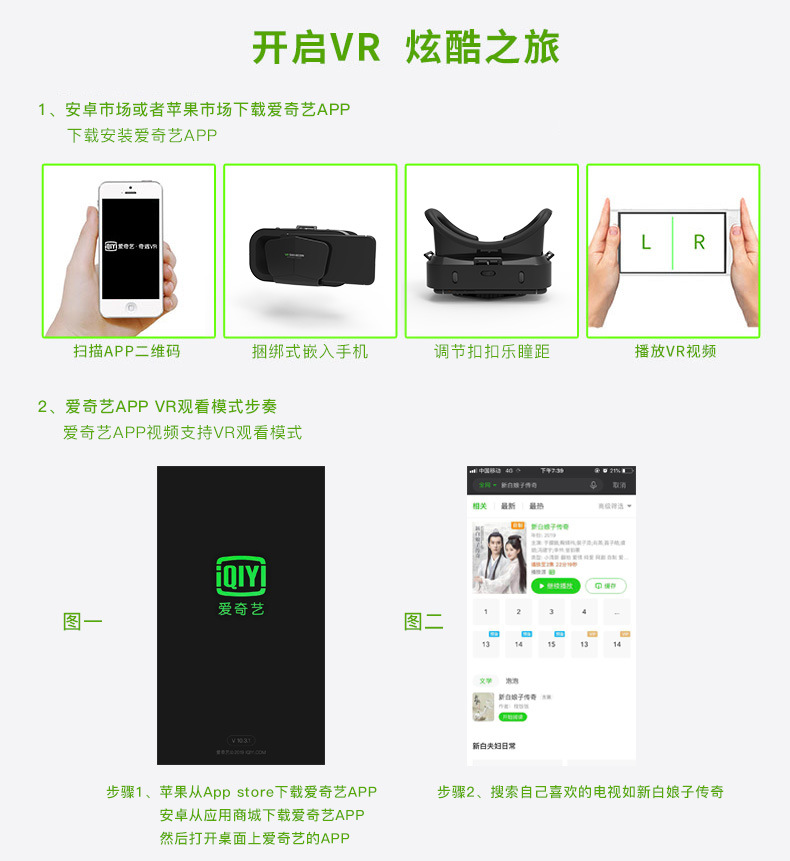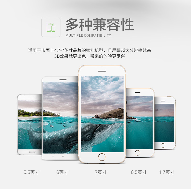VR魔镜本身没有屏幕也无需用电池,必须配合手机一起使用;使用中所有的画面和声音来自于手机本身。因此体验效果跟手机本身的配置有非常重要的关系! The VR Magic Mirror itself does not have a screen and does not require a battery. It needs to be used in conjunction with a mobile phone. All the visuals and sounds during usage come from the mobile phone itself, so the experience is highly dependent on the configuration of the mobile phone.
