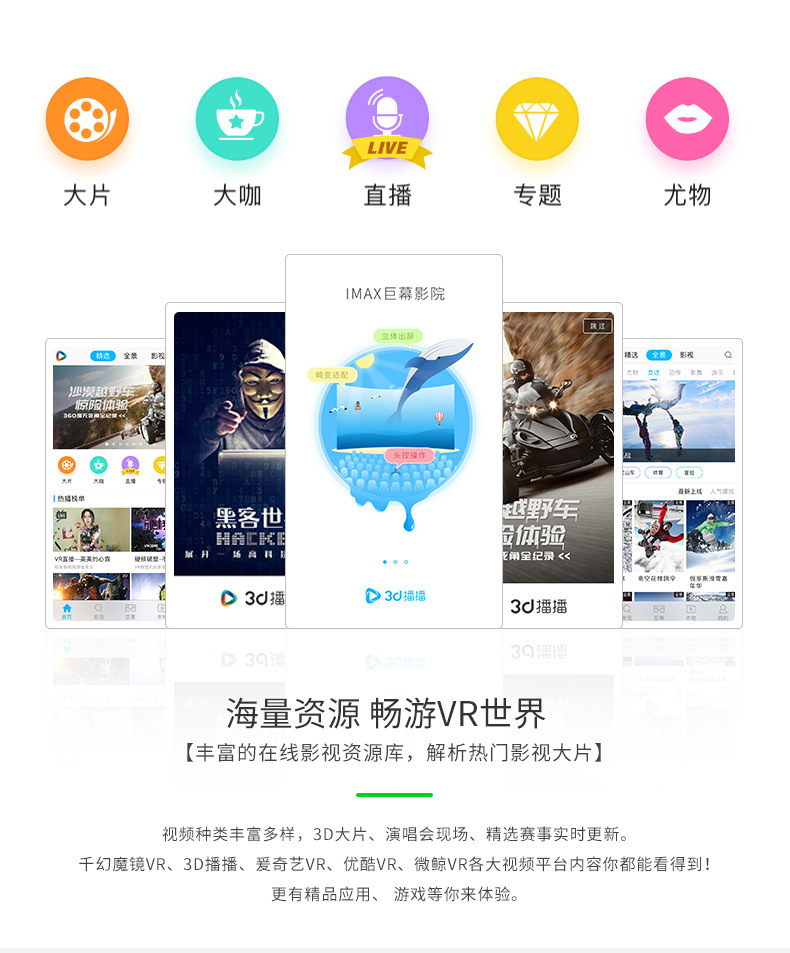 用户须在自己手机自行下载3D类的播放器(左右格式的),境外用户下载自己国家地区相应的3D类播放器即可使用,不同国家地区所使用的APP是不同的。 For users outside of China, you can download a 3D media player that is appropriate for your region or country, as the specific apps used may vary by region.
